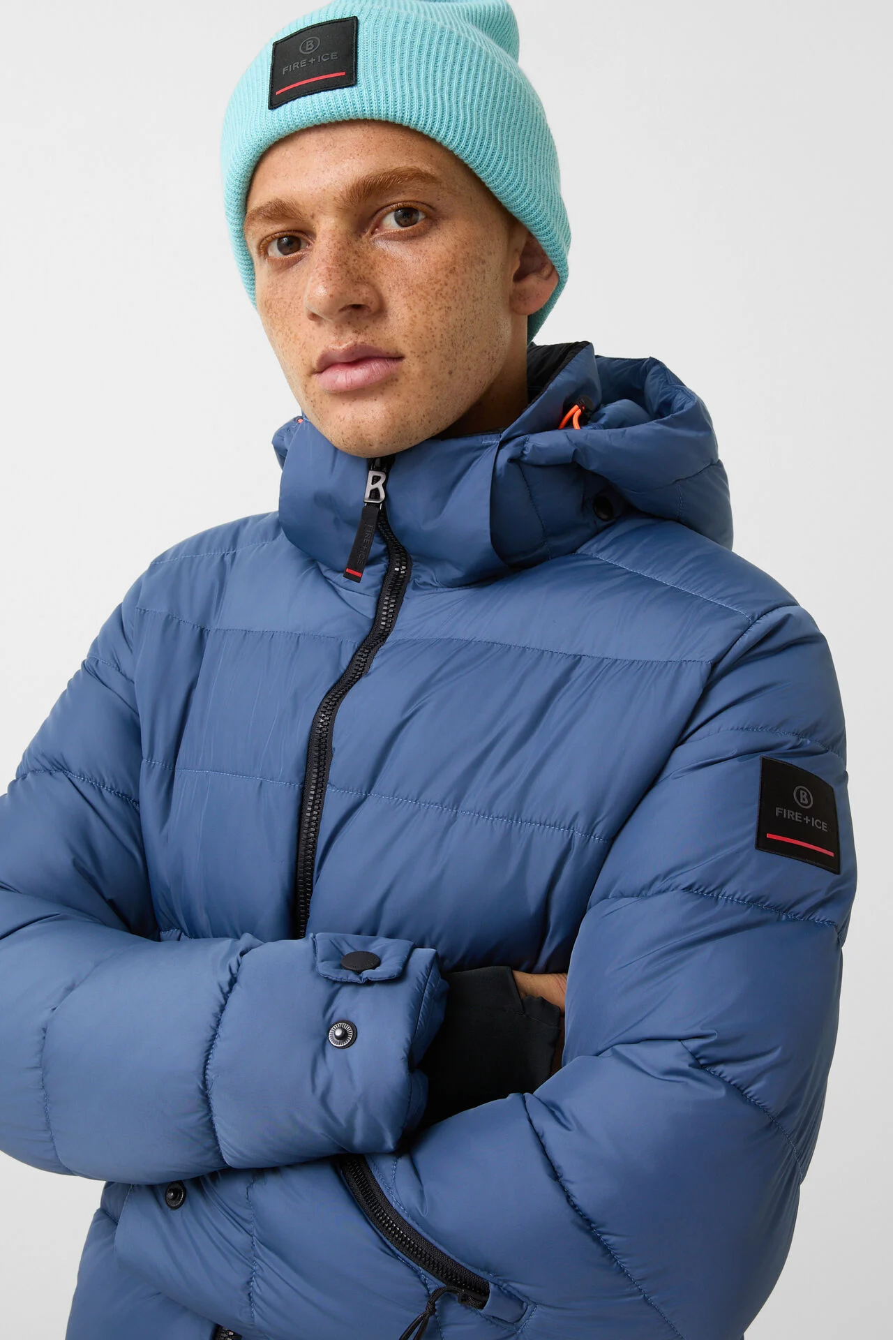 Fastening is a two-way zip with a B-pendant, lined with a FIRE+ICE panel, and functionality is complemented by two zipped side pockets, a zipped sleeve pocket, a concealed zipped back pocket and an internal pocket