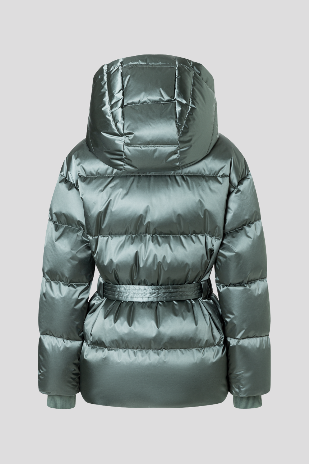 Jacket in a classic silhouette with 25 g/m² 750 Cuin goose down filling and removable insert with 100g lining and lambskin hood without collar hood is directly fixed in the neck opening waist belt knit cuffs on the sleeves inner snowguard cuff inner zipped pocket made of functional double-layer satin breathable C0 downproof waterproof water-repellent WR with point lamination hood with drawcords and adjustable fastens with two-way zip with B-logo medallion removable hood lining lambskin four zipped pockets wide side belts with belt buckle B-clip ski map pocket on left sleeve knit cuffs on sleeves snowproof lining with buttons and inside pocket made of two-layer water-repellent and waterproof functional satin with recycled content GRS certified water column 10,000 mm breathability 10,000 g/m²/24 h fill down blend 125 g/m² 750 Cuin padded insert 100 g bluesign certified product is created from PFAS free materials provides water repellent properties without harmful and persistent chemicals proper care maintains high functionality and durability