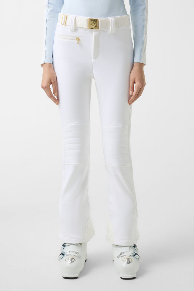 The model fastens with BOGNER tic-tac buttons, hook and hidden zipper, while the attached waistband with lumbar protection and elasticated waistband with logo and B-buckle ensures stability and a perfect fit
