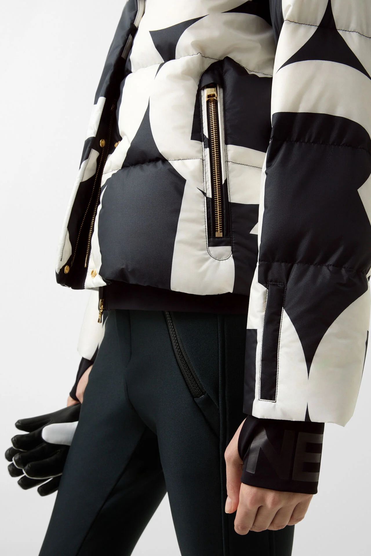 Quilted down ski jacket in a classic silhouette executed in sleek flowing nylon sections