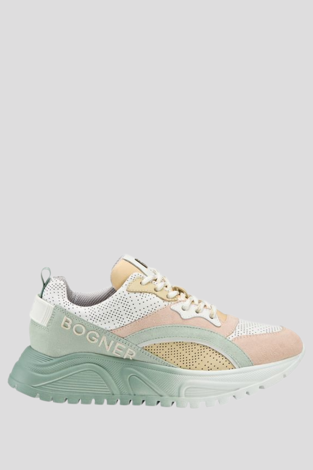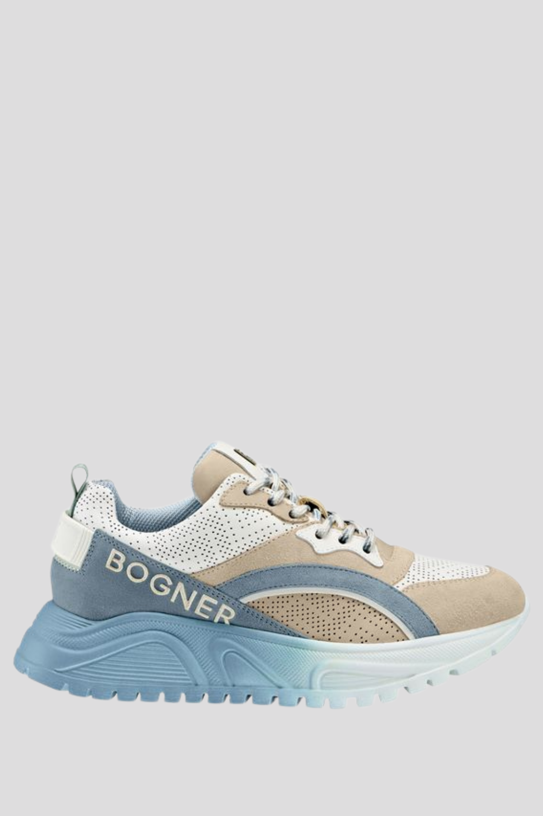 Дамски сникърси, изработени от изящна гладка кожа и фин велур, с изтънчена текстурирана подметка и характерното лого BOGNER отстрани