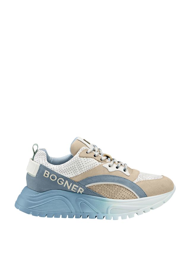 Дамски сникърси, изработени от изящна гладка кожа и фин велур, с изтънчена текстурирана подметка и характерното лого BOGNER отстрани