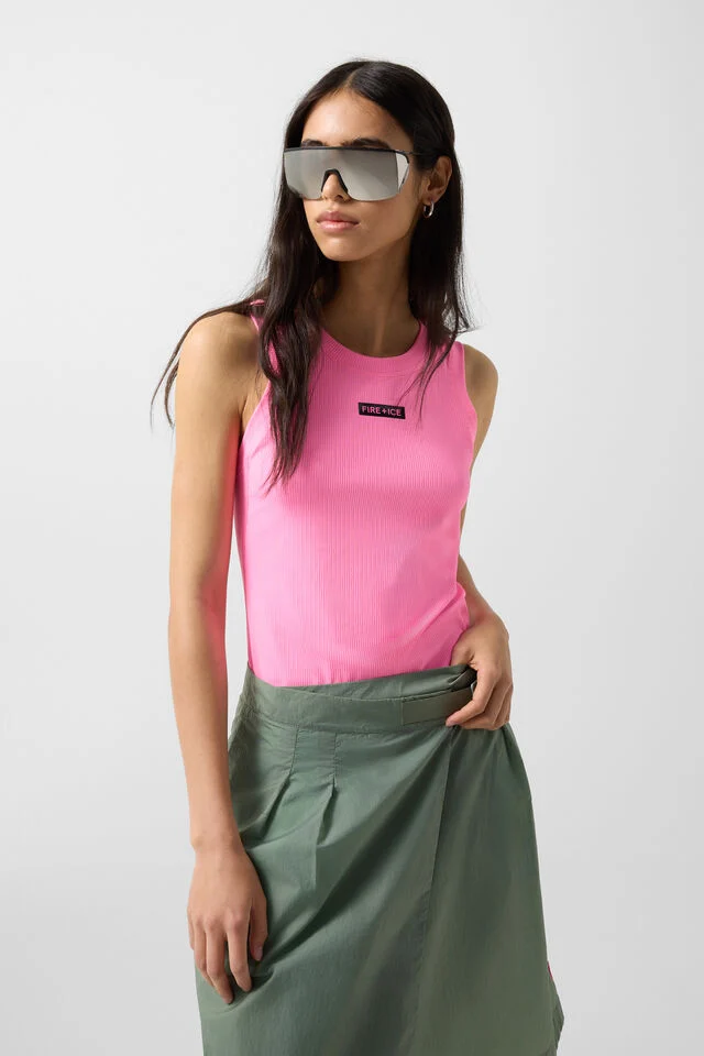 Round collar FIRE+ICE logo on front, decorative seam in the middle of the back, back slightly longer, wide cuffs on the underarms, made of light rip-jersey with smooth inner side