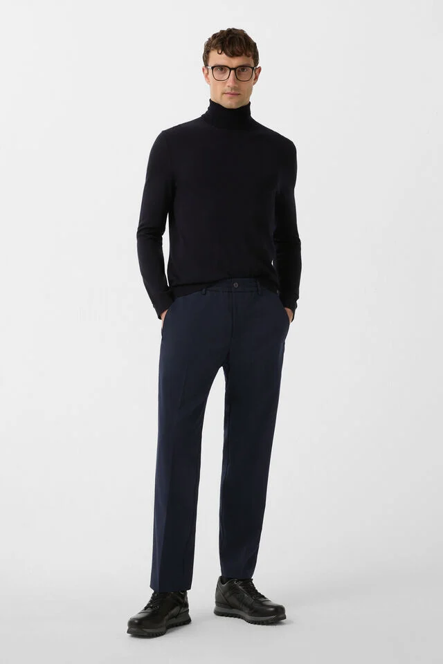 Pants in a classic silhouette and straight legs, finished with finely stitched ends