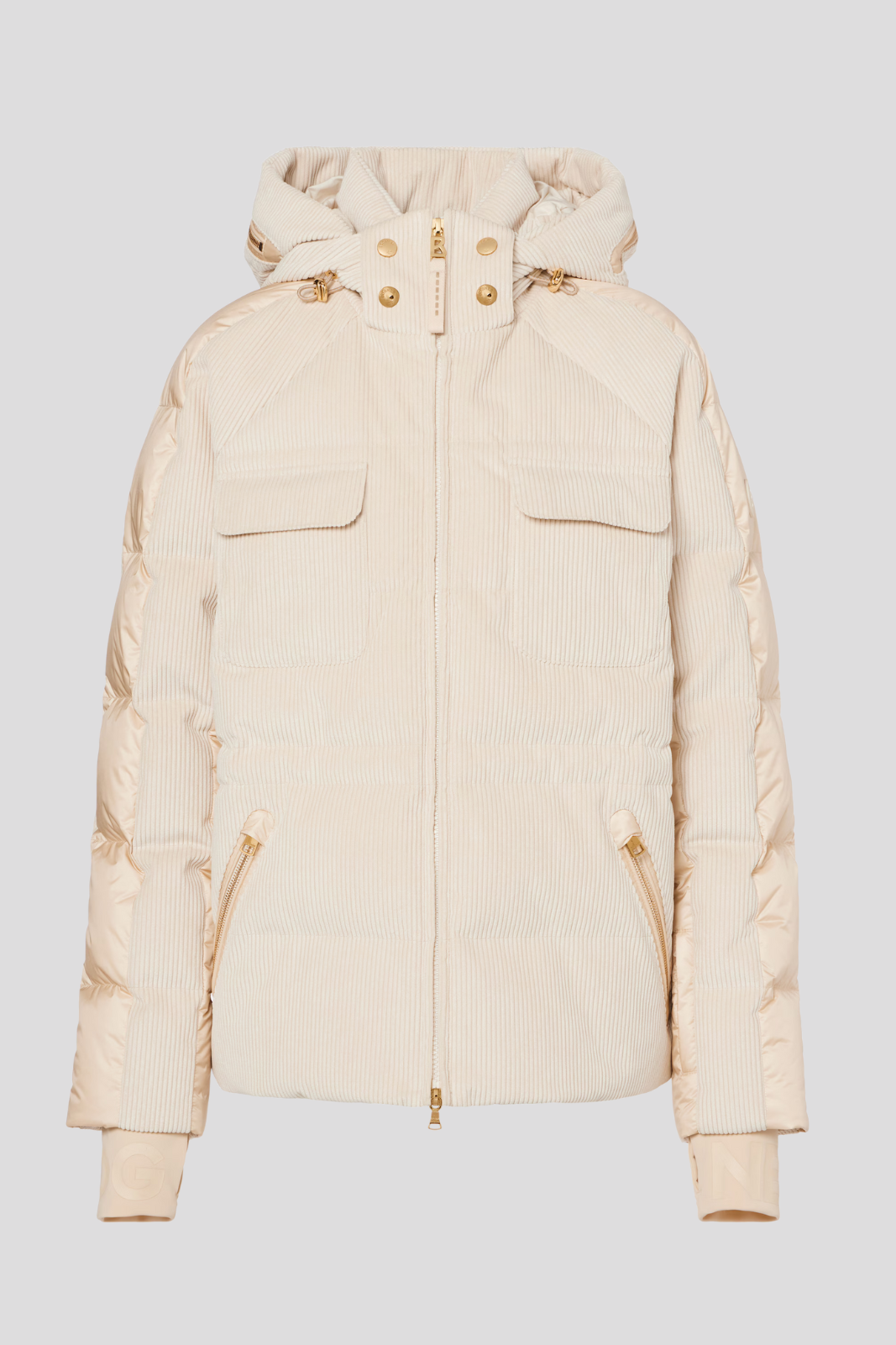The padded straight-waist collar and zipped hood feature elegant drawstrings, metal stoppers and teak-tack fastenings, while the sophisticated BOGNER zipped inlay adds a distinctive premium accent