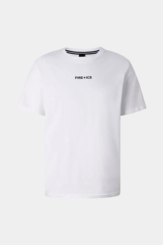 Тениска с прав силует и кръгло деколте с рипсен кант, с FIRE+ICE принт на височината на гърдите