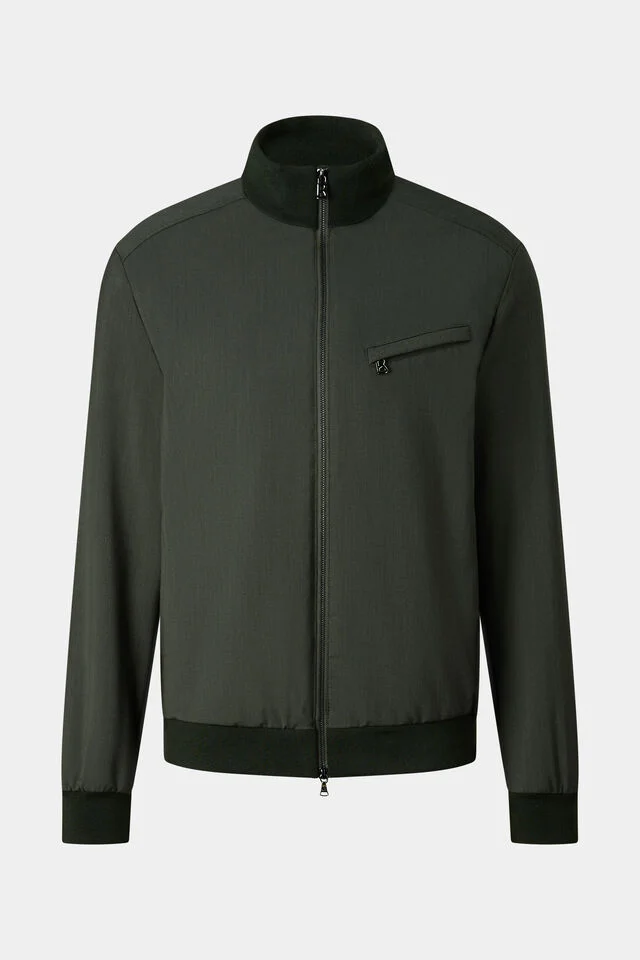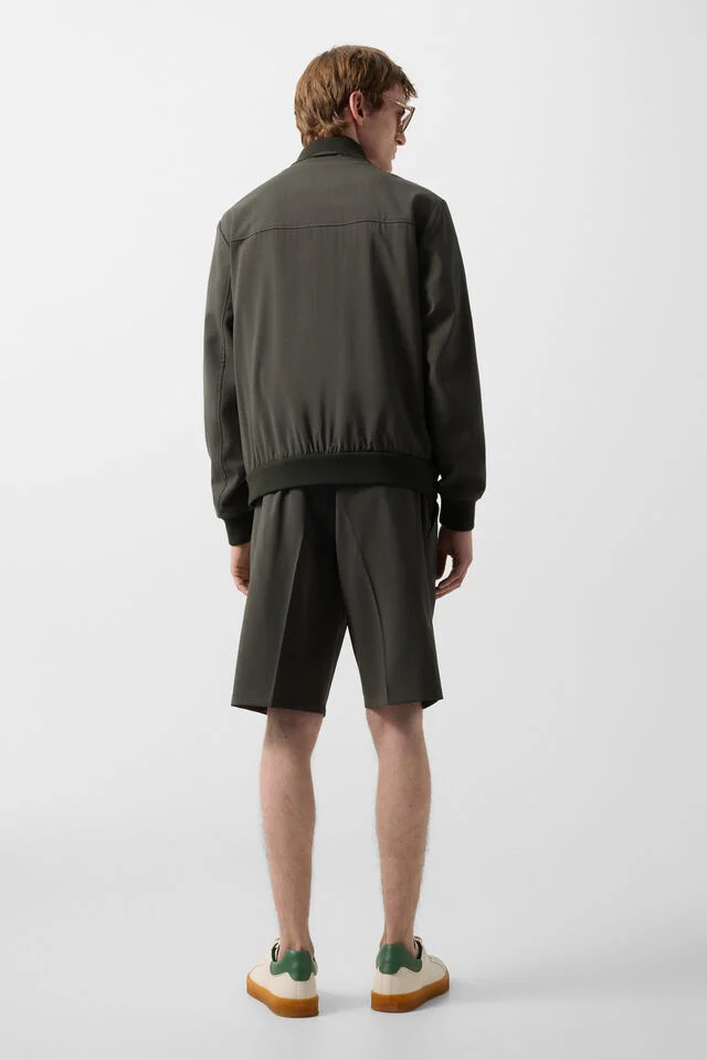 Яка с изправена линия на тялото и дълги ръкави с оребрени маншети