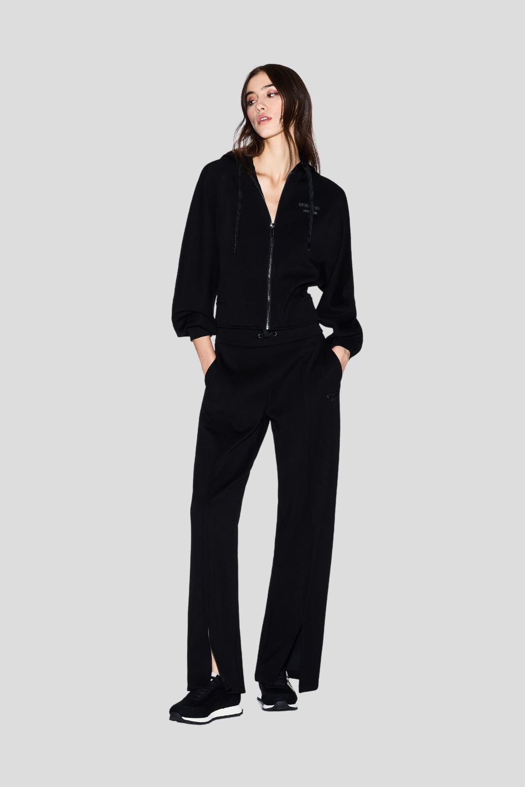 Zipped side pockets provide practicality and security, while a single zipped back pocket maintains the balance between form and function
