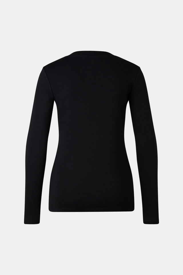 Дамска блуза с дълъг ръкав в прав силует, с кръгло деколте във фин рипсен завършек