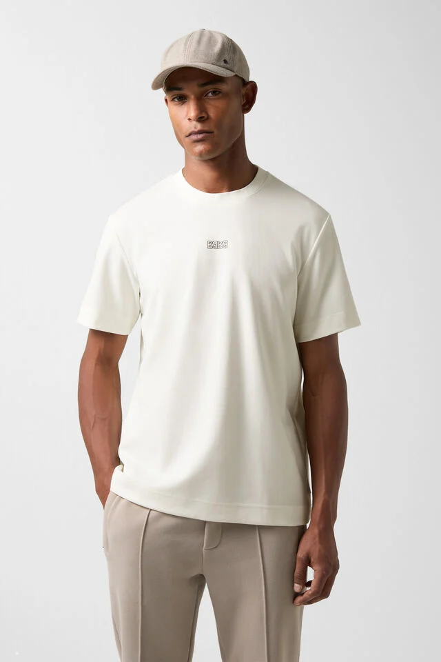 The design is designed without fastening, with appliqued B-Rubber logo on the sleeve and hem with fine decorative stitching