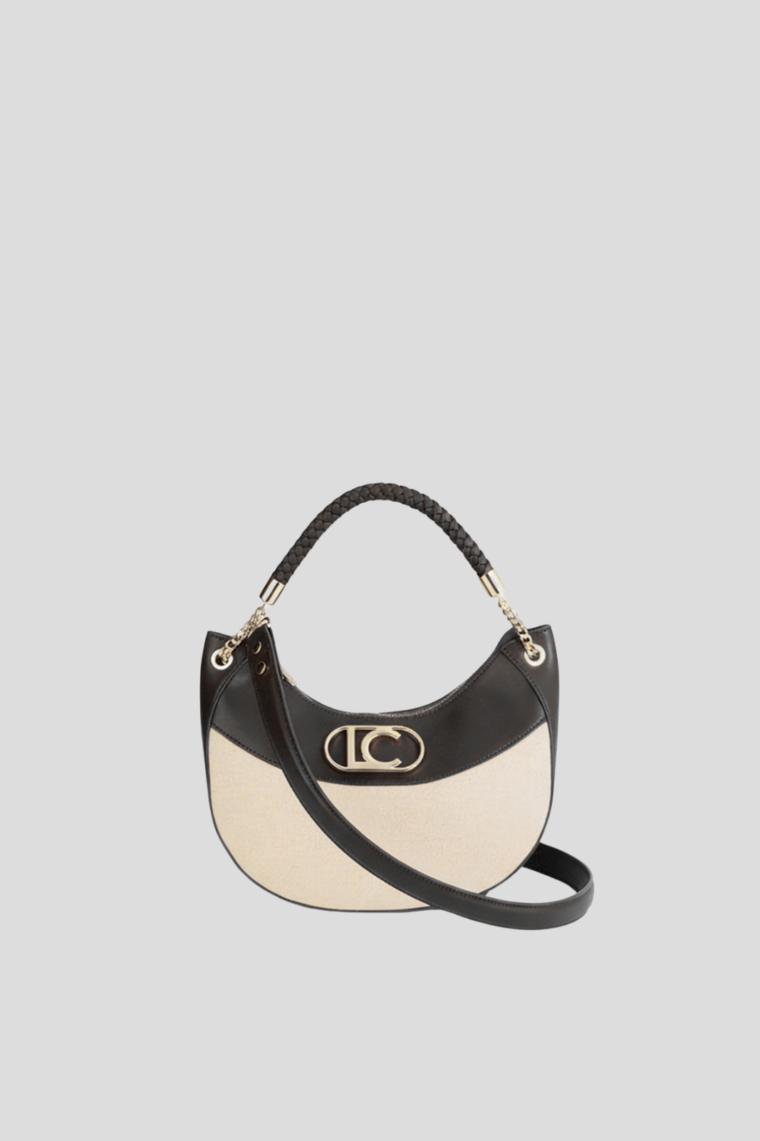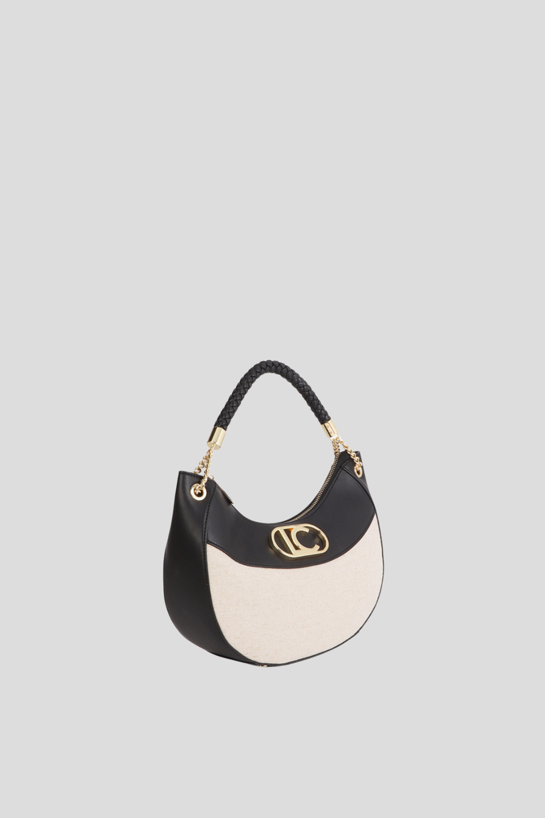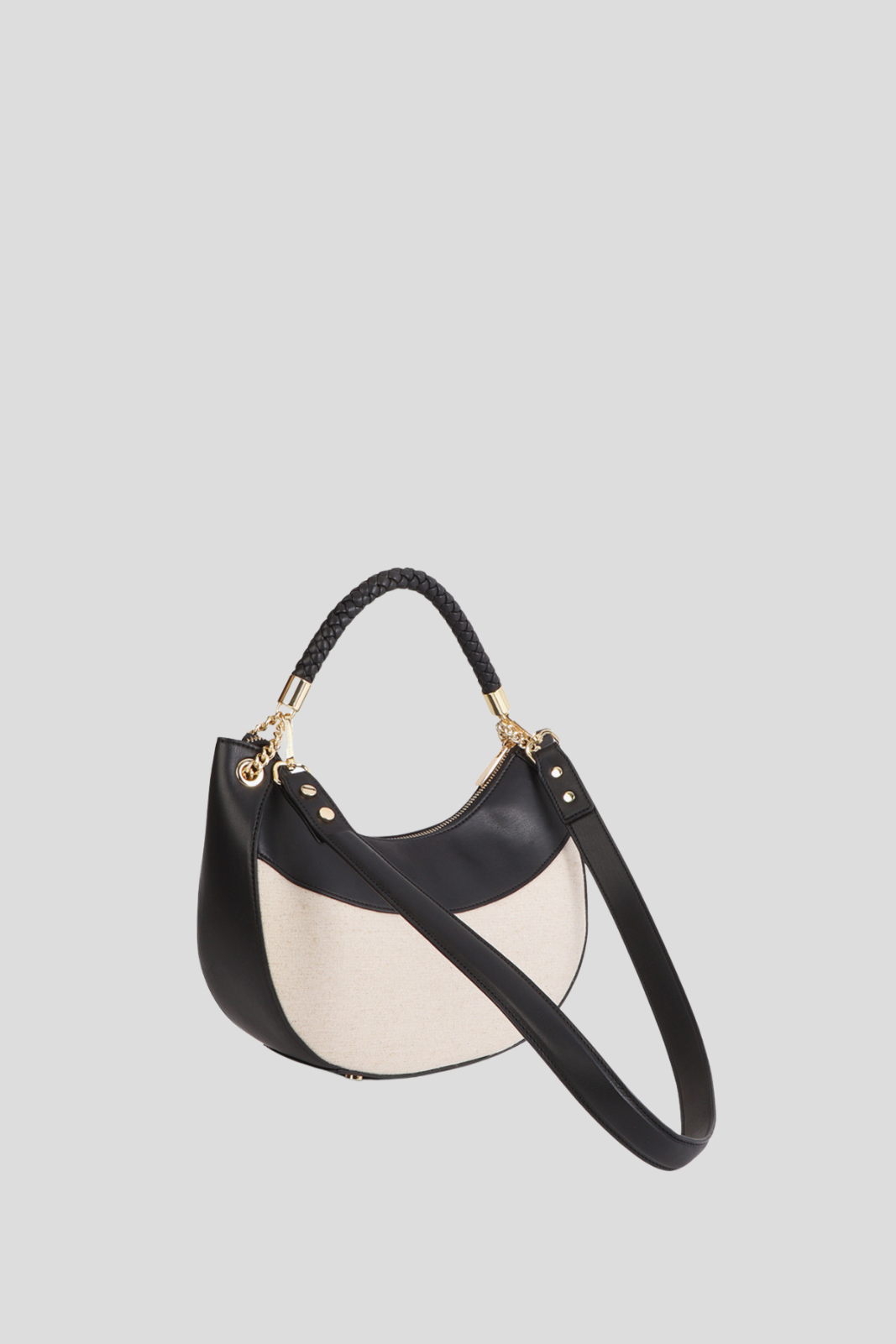 Двуцветна hobo чанта с елегантна комбинация от платно и ефект на фина кожа