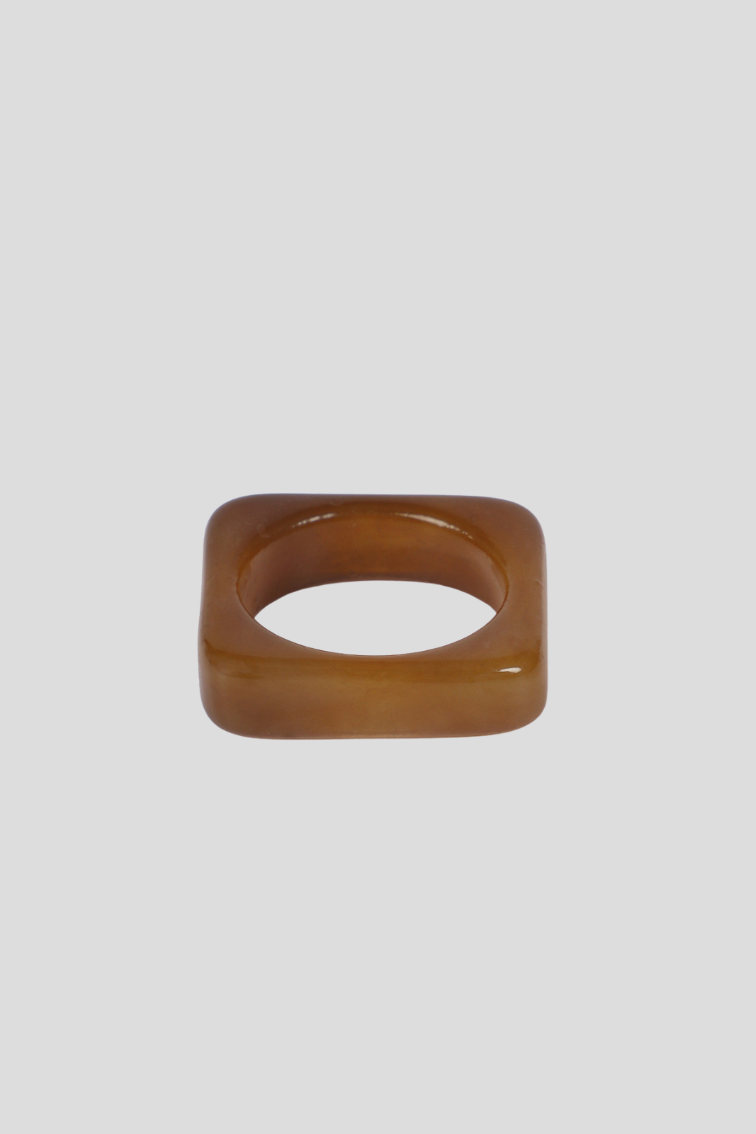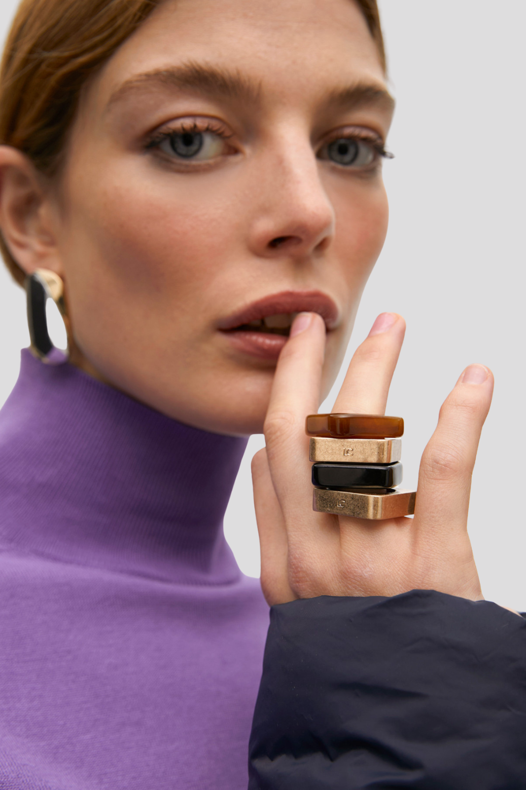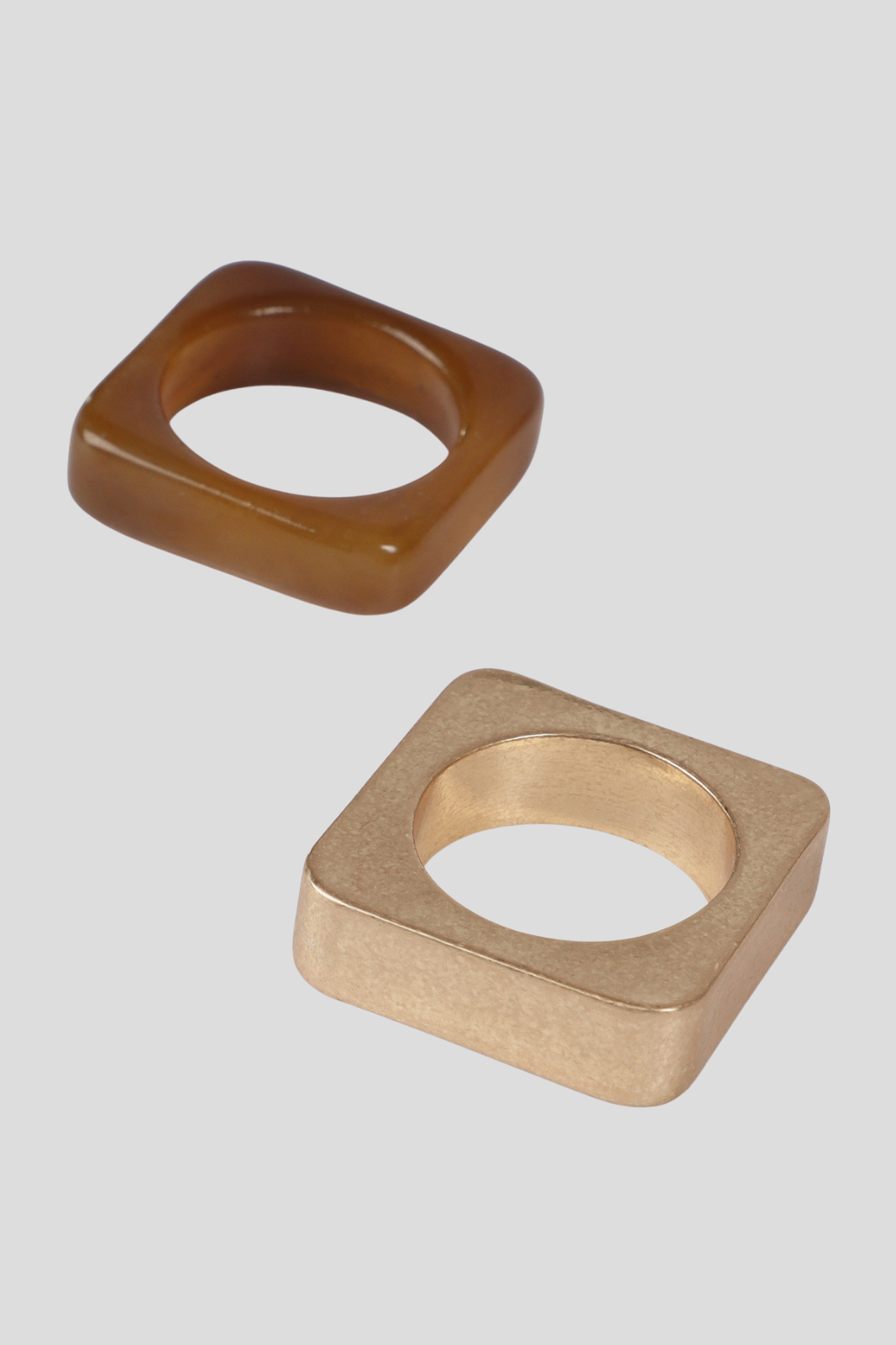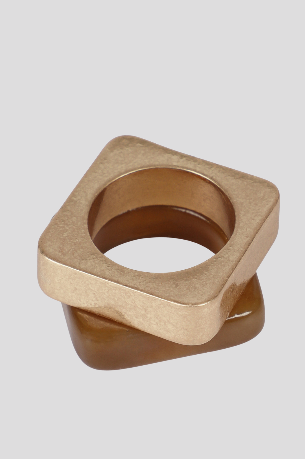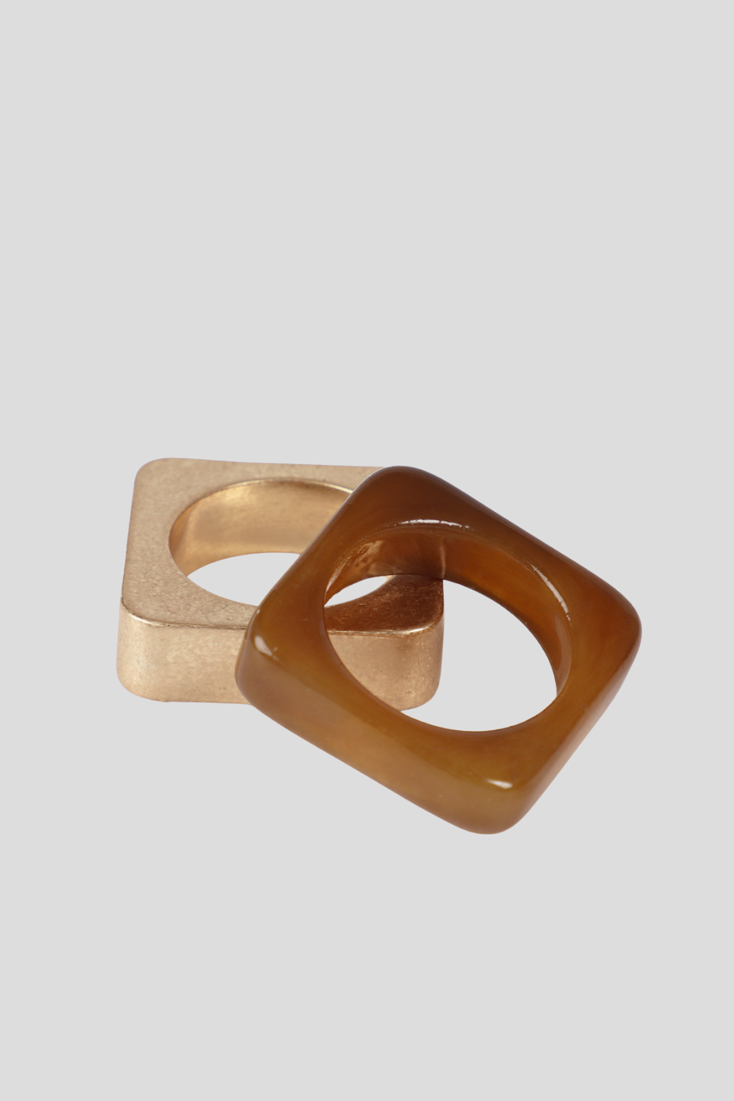 Един метален златист пръстен и друг в прозрачен кафяв тон, и двата с модерен и авангард стил