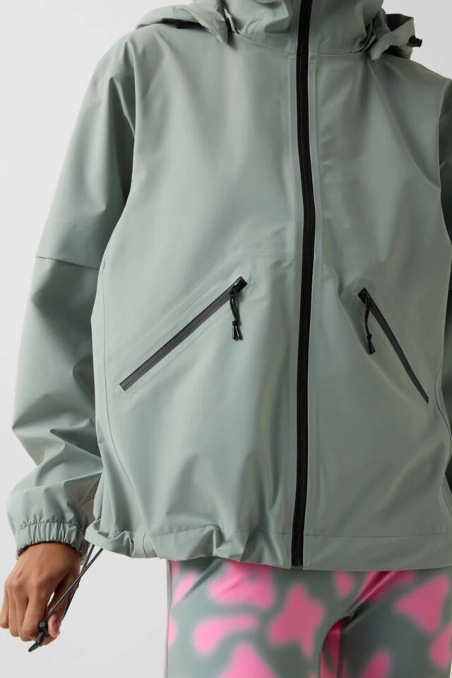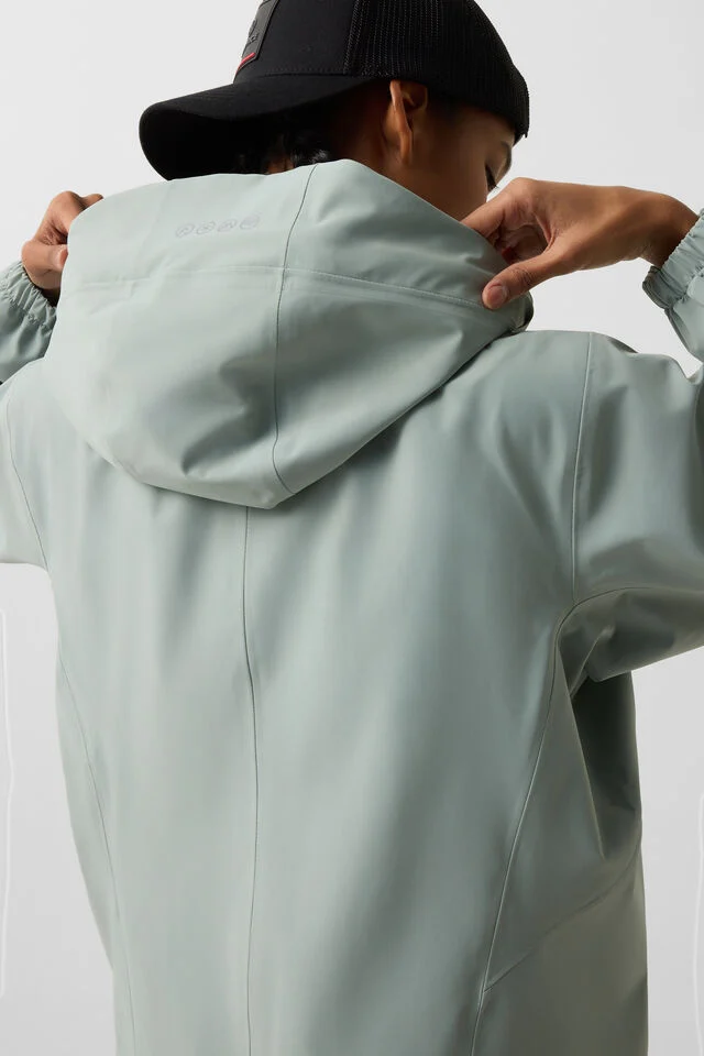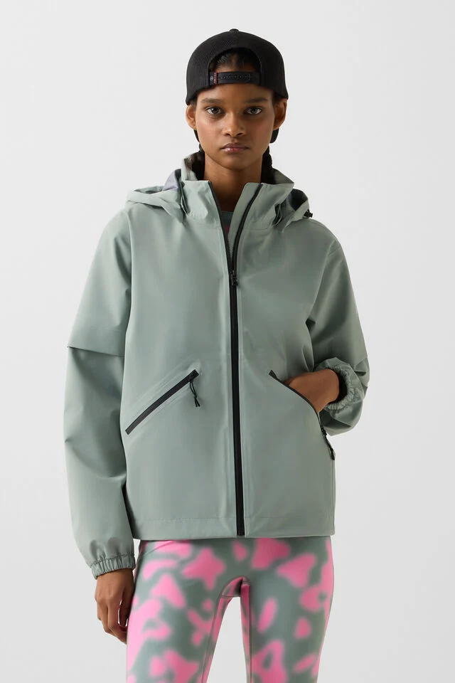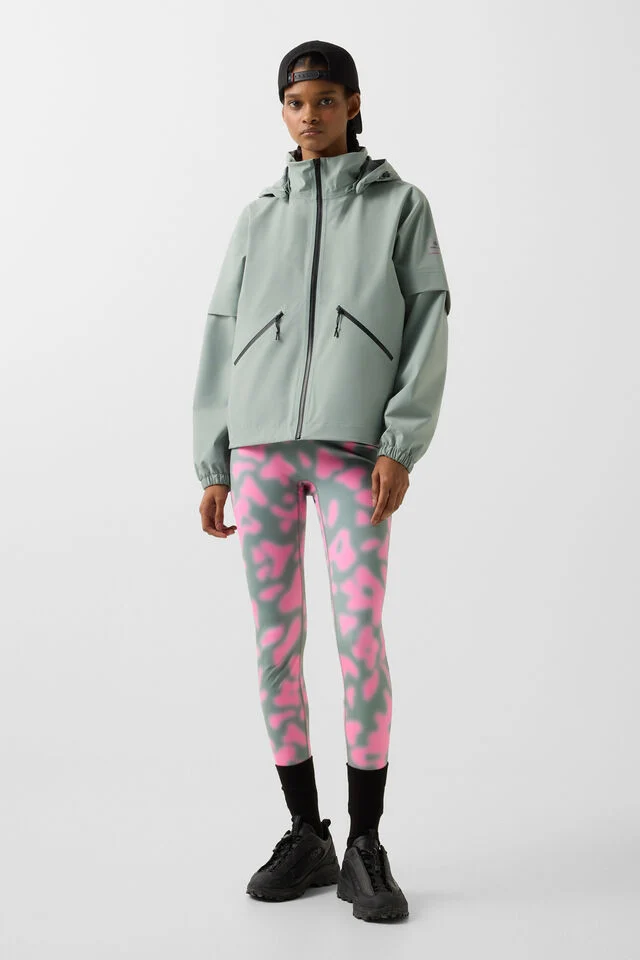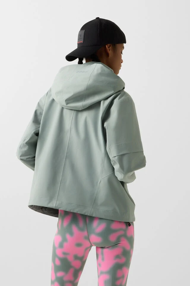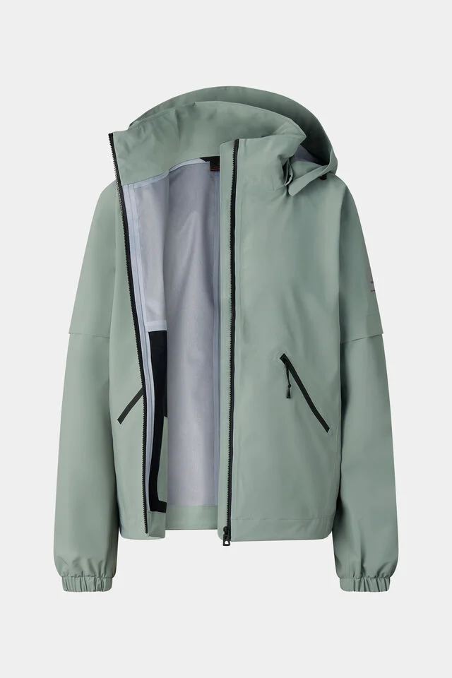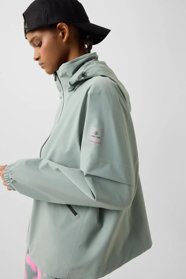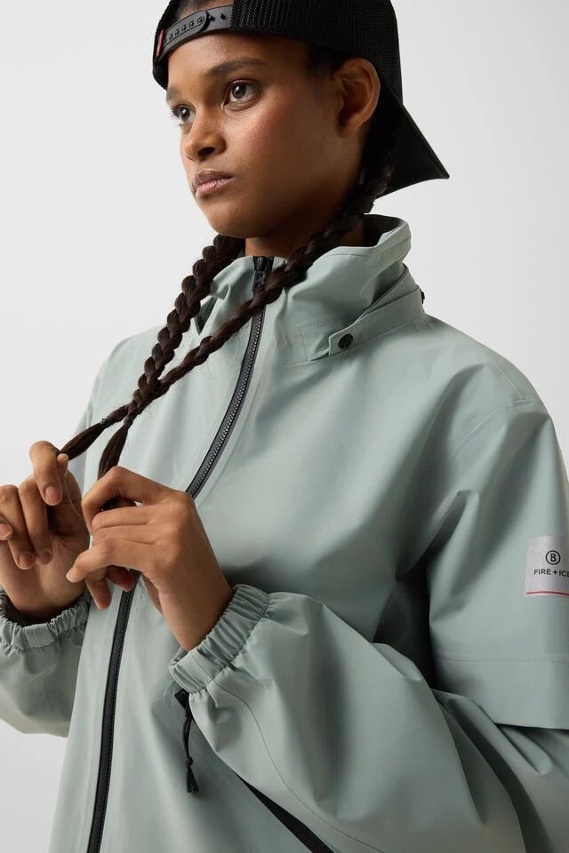 Jacket in straight silhouette stand collar detachable hood with drawstrings and stopper long sleeves with elastic cuffs lined B-zipper two side zipper pockets reflective design prints on hood reflective print with FIRE+ICE logo on sleeve patches on sleeves fully sealed seams with durable water-repellent coating in 3-layer treatment hem finish with drawcords and stopper breathability 10000 g/m²/24 hours back length 57 cm