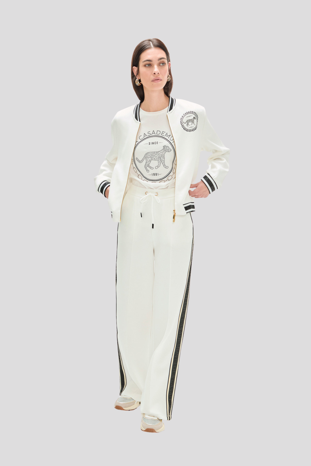 Панталон, изработен от висококачествен scuba плат с контрастни странични ивици, които придават модерен и динамичен акцент