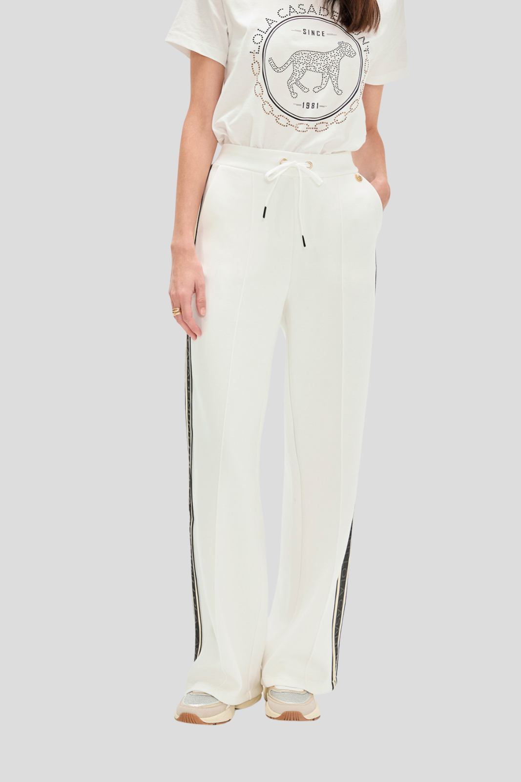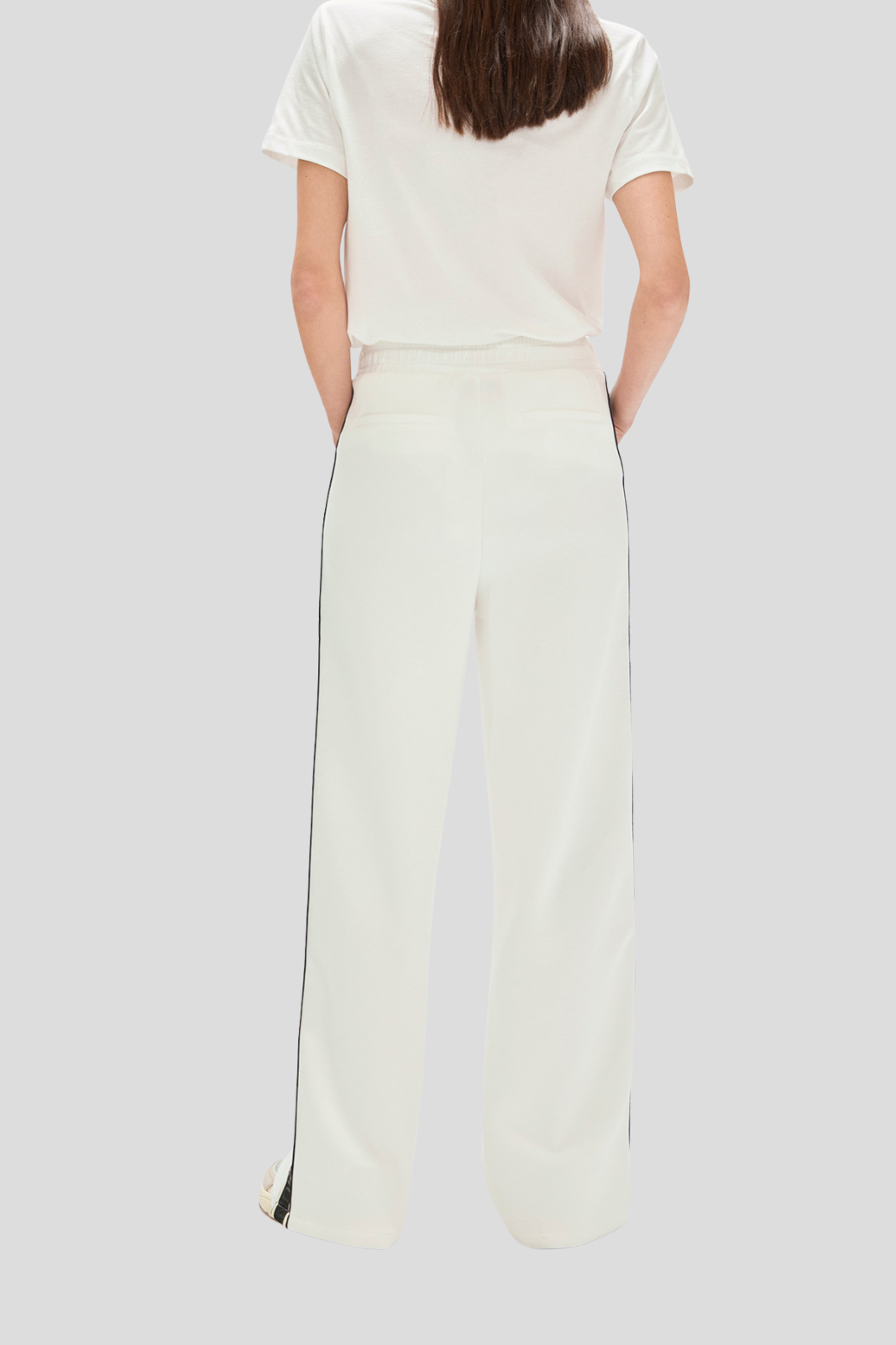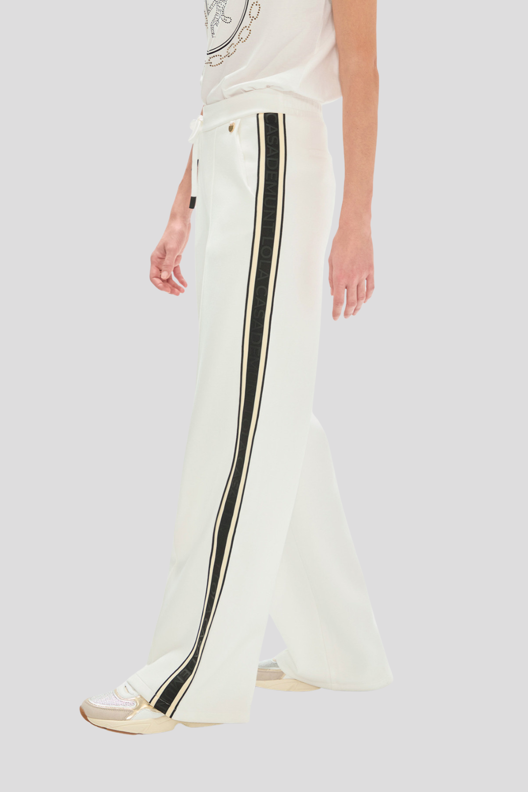 Панталон, изработен от висококачествен scuba плат с контрастни странични ивици, които придават модерен и динамичен акцент
