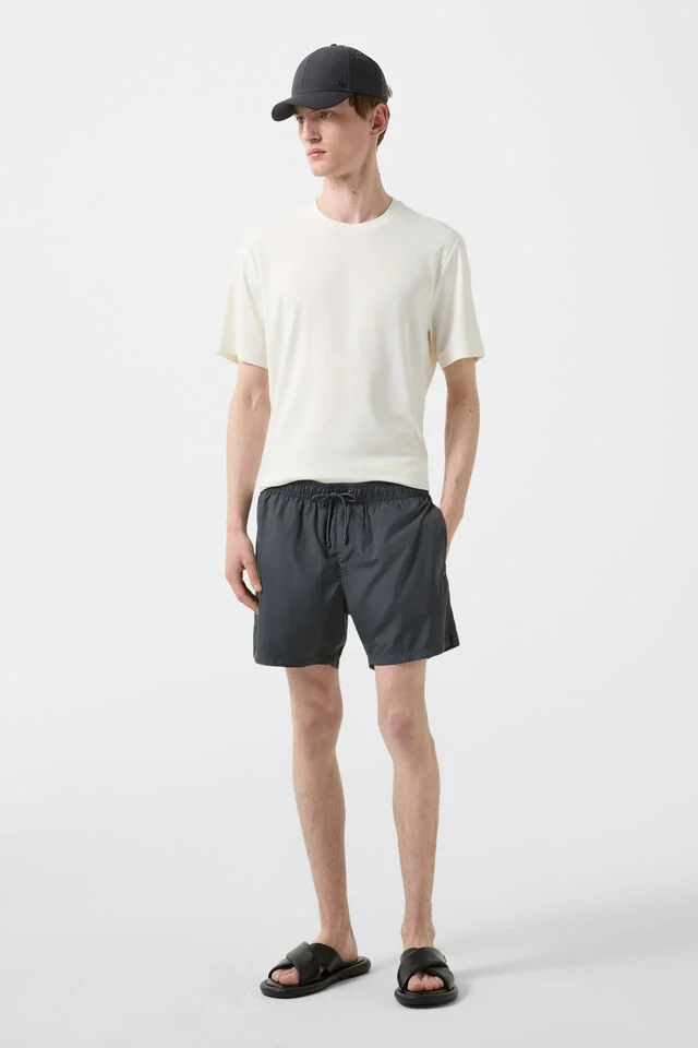 Straight-cut swim shorts combine comfort and functionality in a stylish design