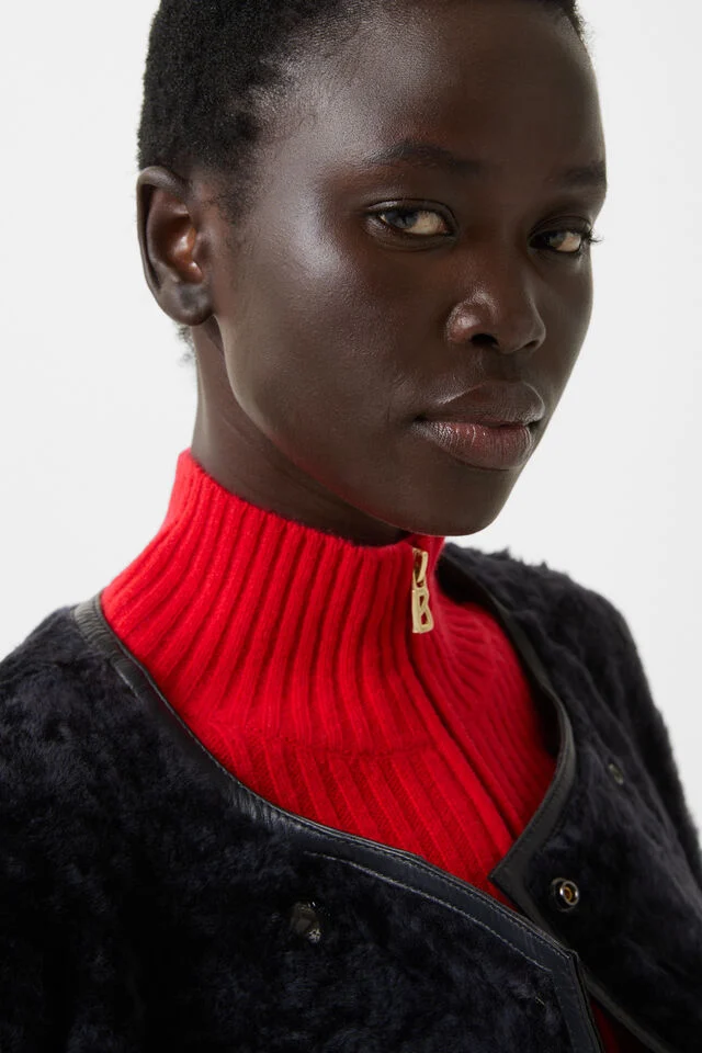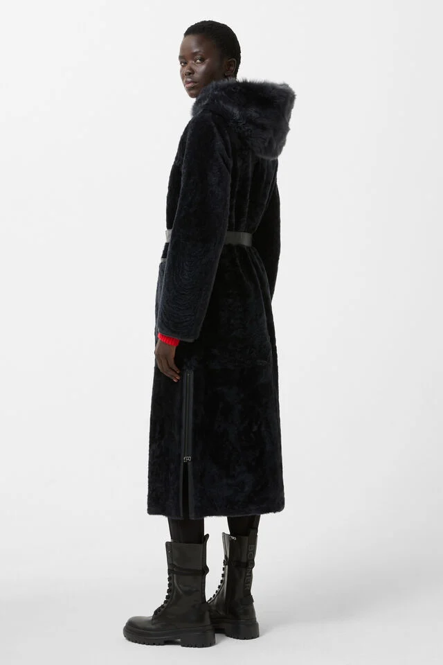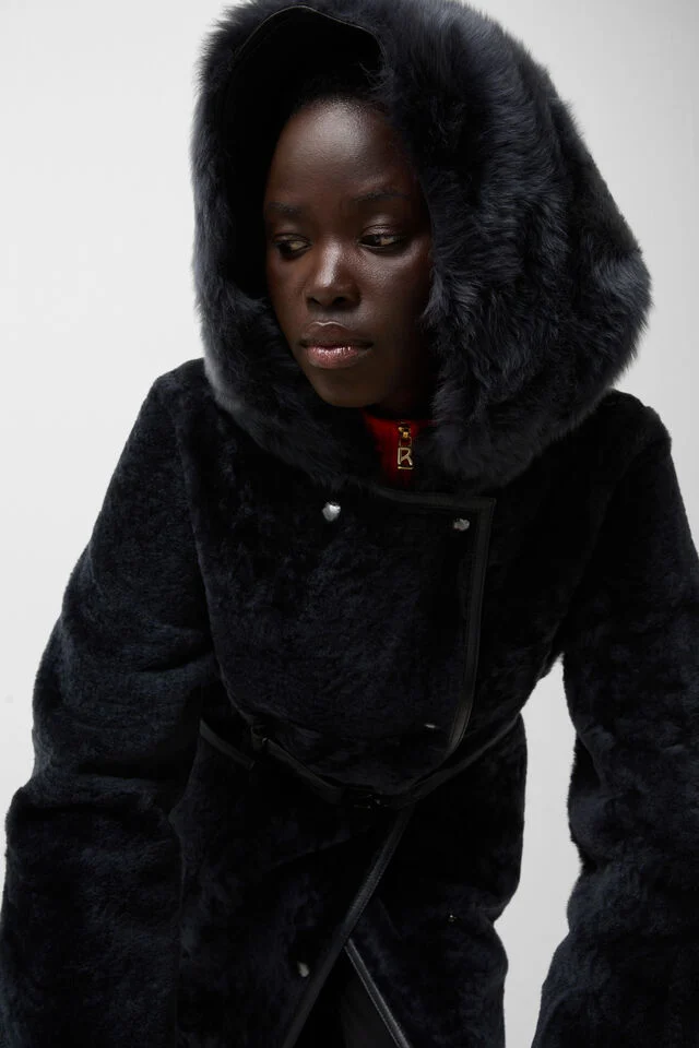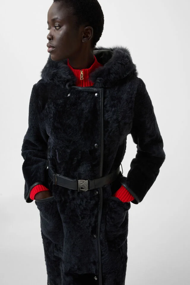 High-quality nappa leather belt with metallic B-buckle accent at the waist, Highlighting femininity