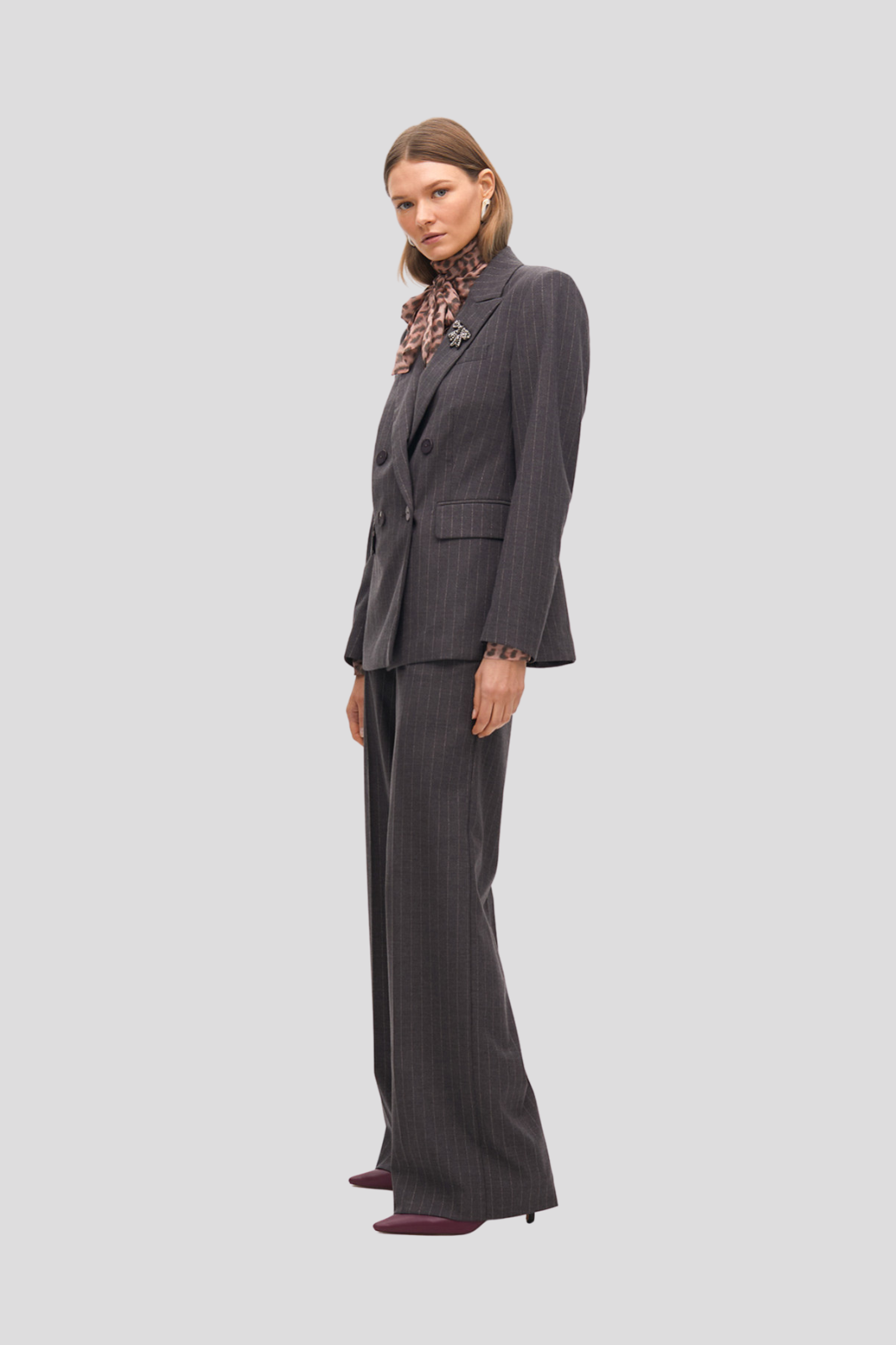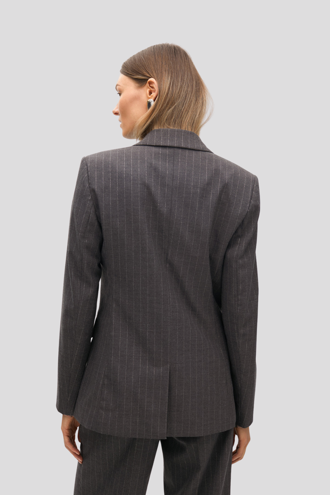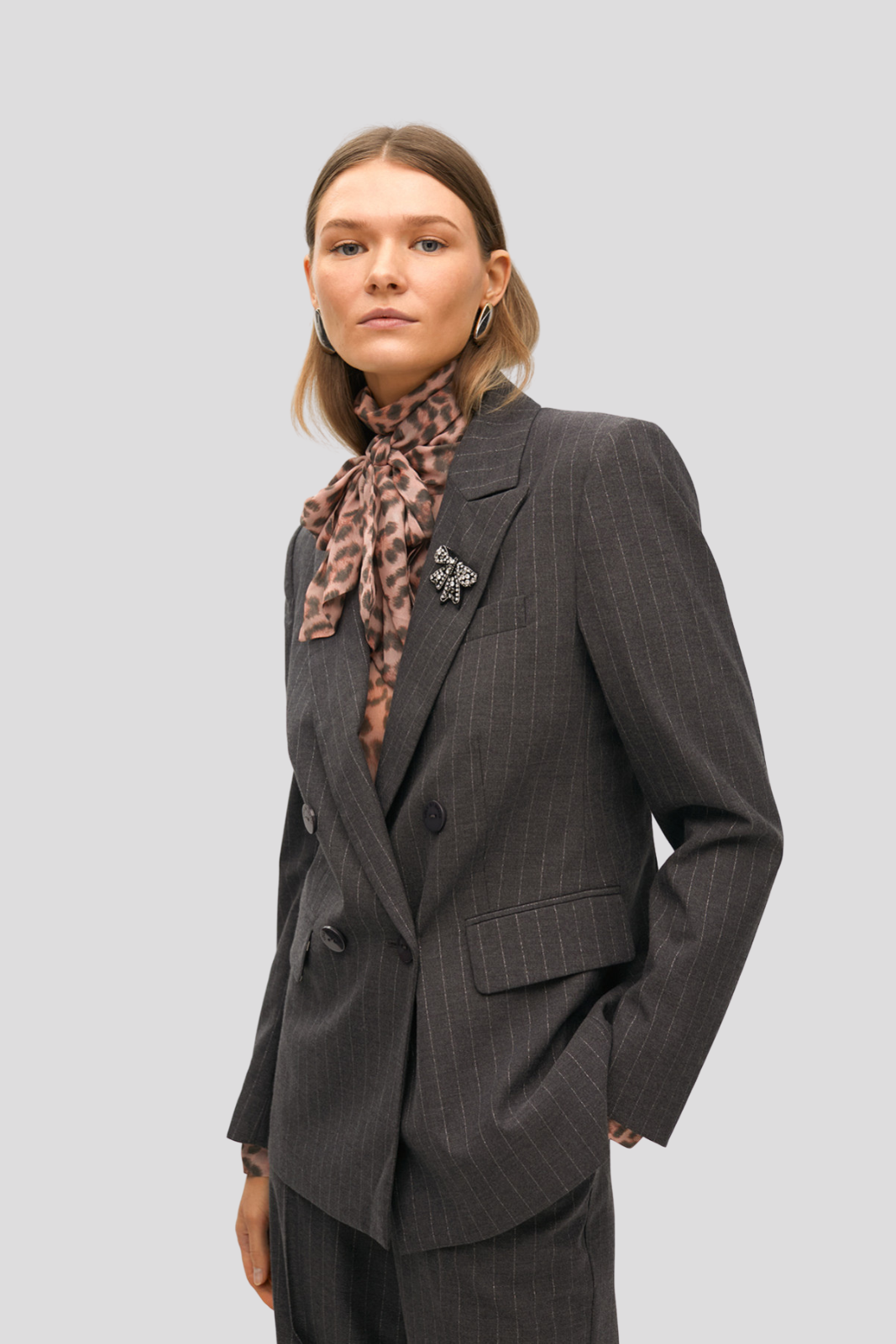Елегантно сако в класически силует на райе с двуредно закопчаване