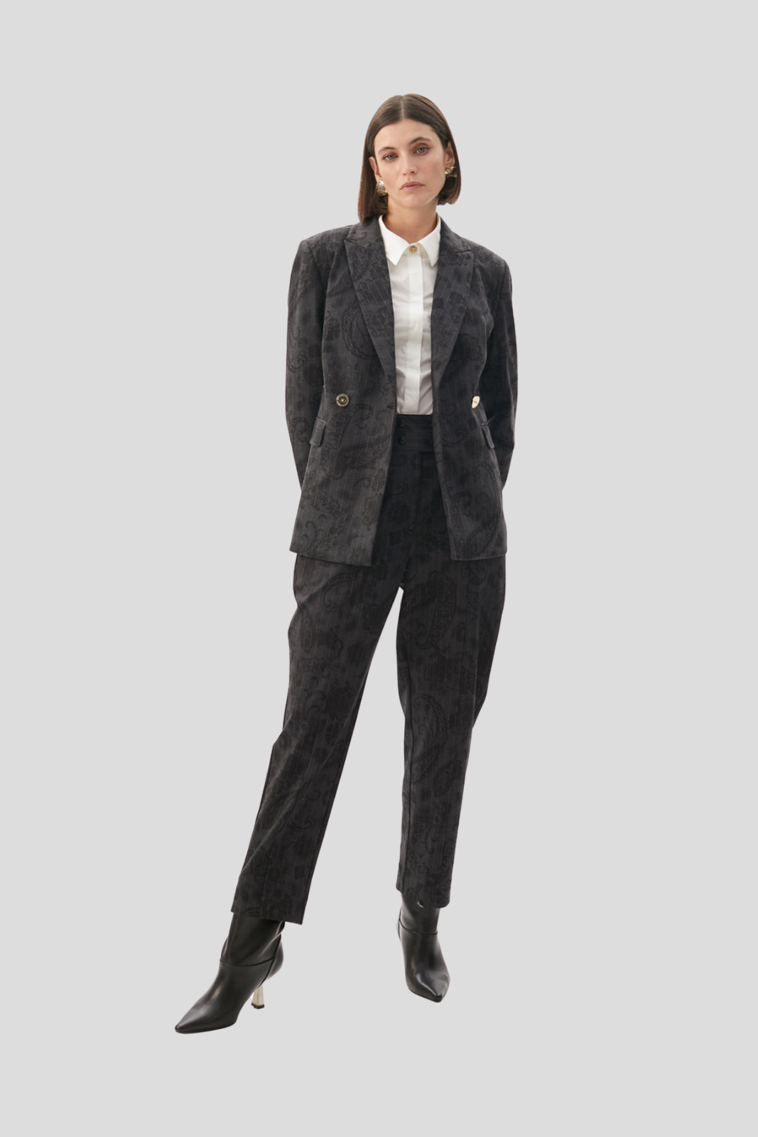 Elegant jogger pants with dark paisley pattern in a straight silhouette