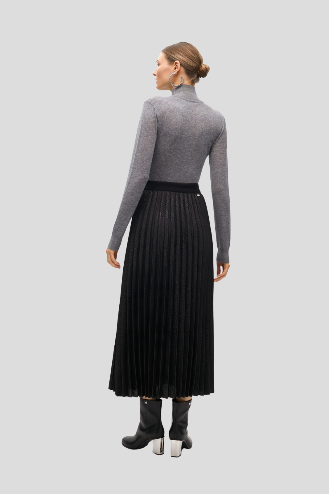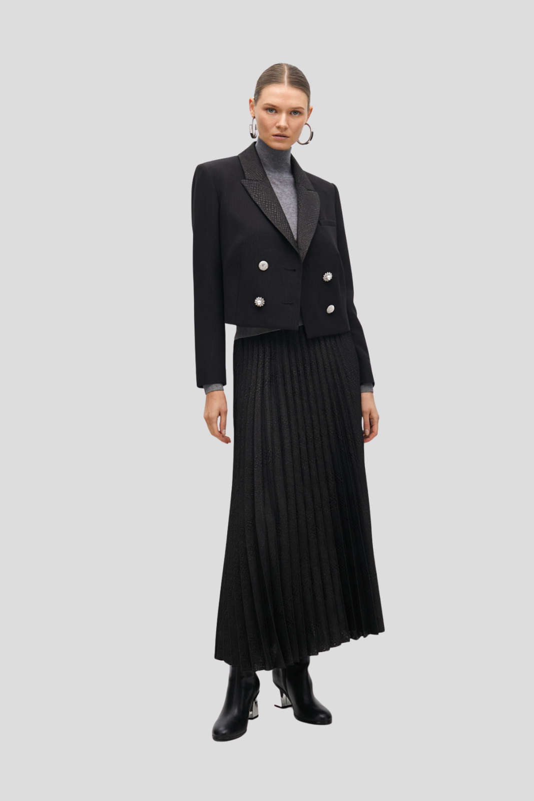 Елегантна миди пола в класически силует, изработена от лека материя с плисета и животински принт