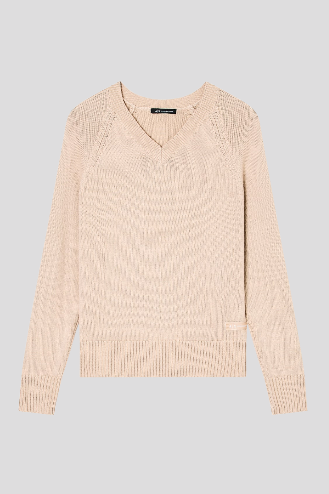 Minimalist silhouette with a classic V-neck exudes unobtrusive elegance, while the delicate tone-on-tone logo adds a subtle accent of premium detail