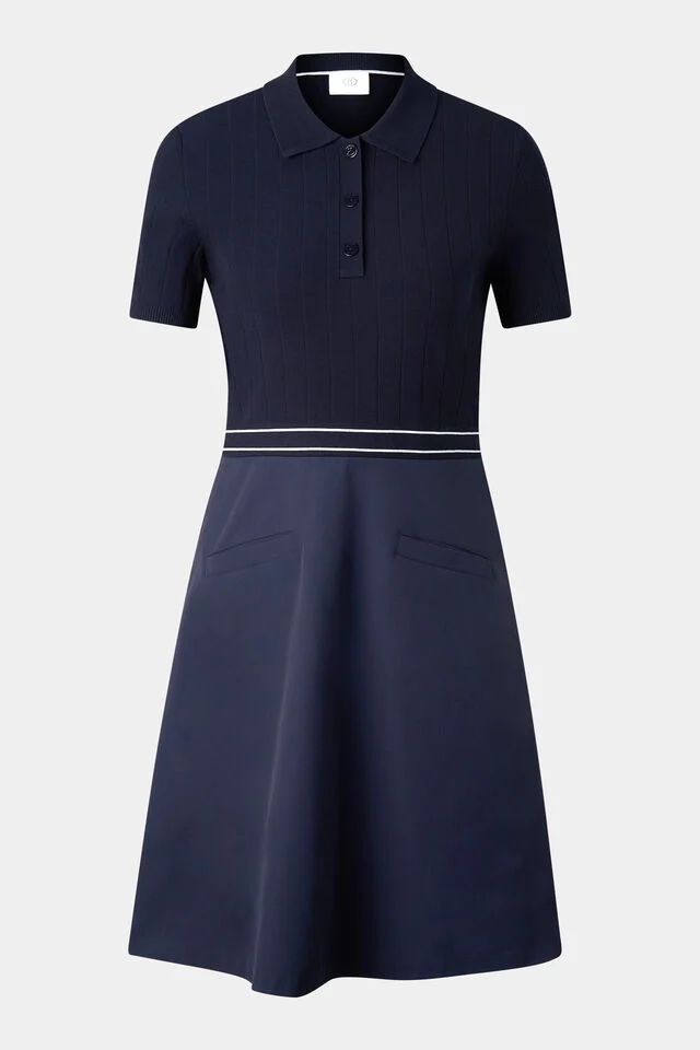 Midi length dress in a classic silhouette with a structured fine knit top