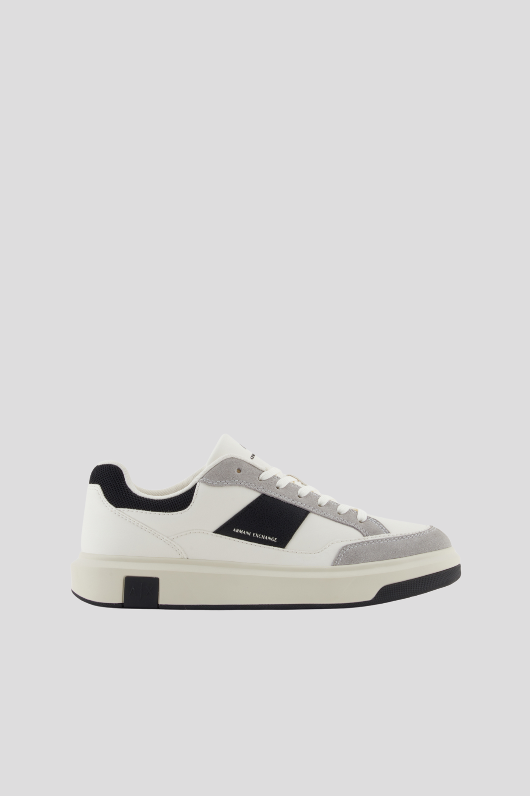 The two-tone sole with cream midsole and gripper completes the look, while the Armani Exchange logos, strategically positioned on the side strap, tongue and midsole, confirm the brand’s identity