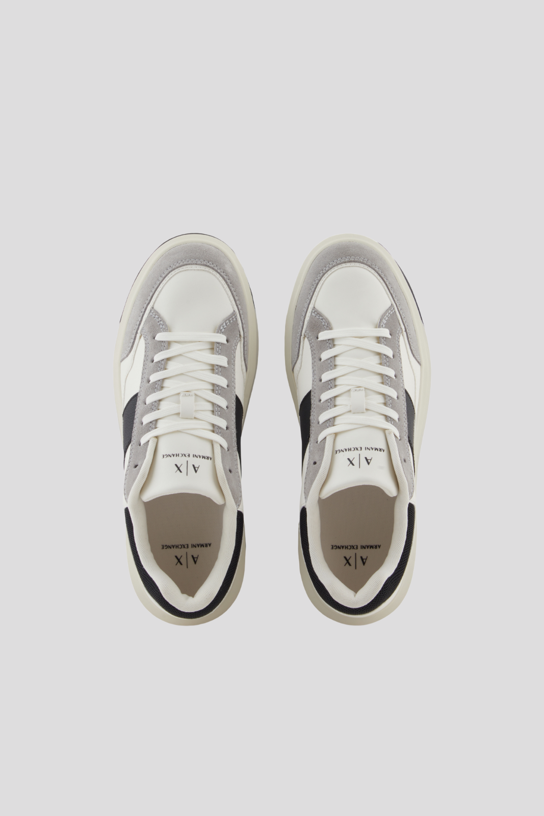The two-tone sole with cream midsole and gripper completes the look, while the Armani Exchange logos, strategically positioned on the side strap, tongue and midsole, confirm the brand’s identity