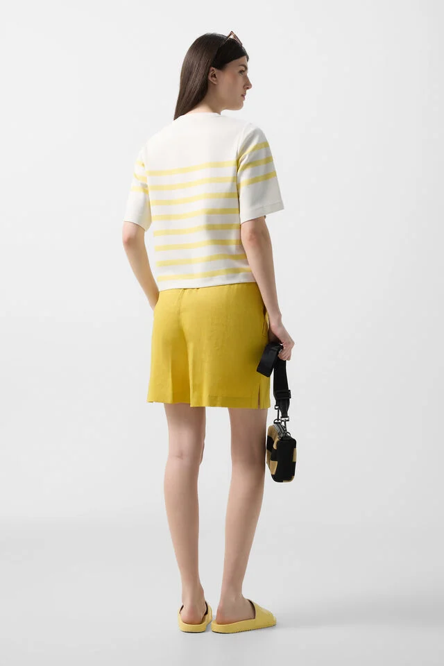 Oversized T-shirt with a classic silhouette and sophisticated striped design, featuring a round neckline and subtle V-neck detailing