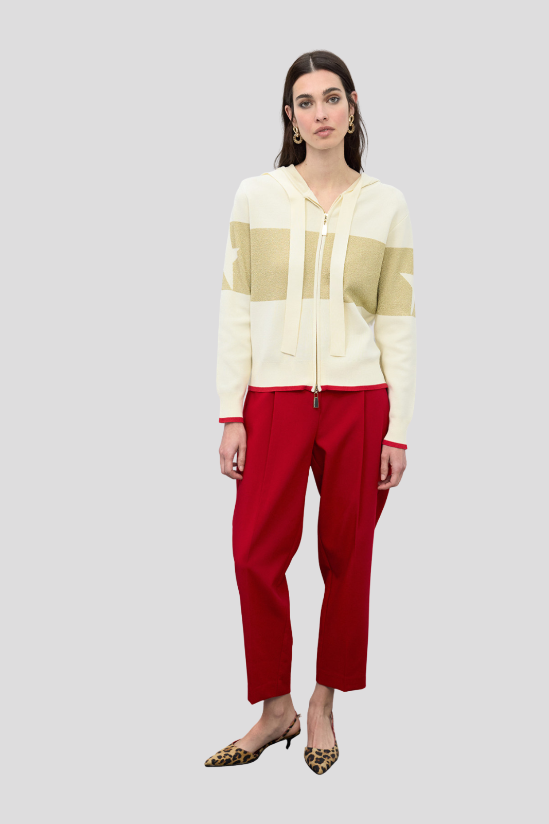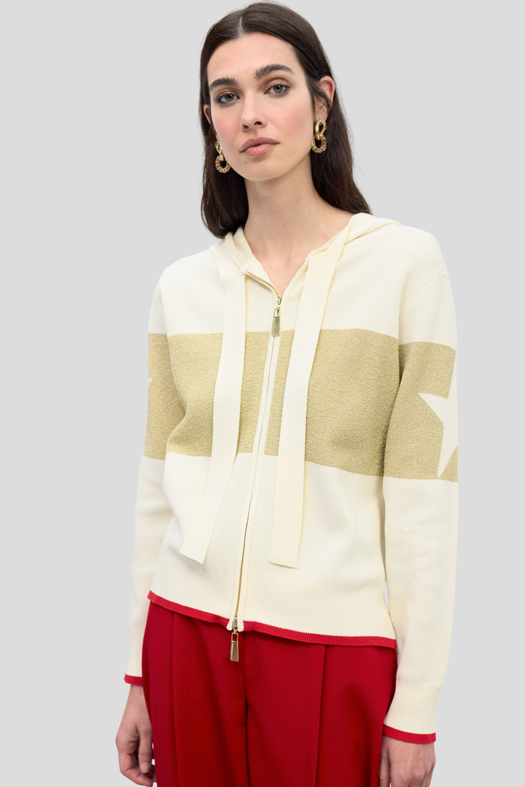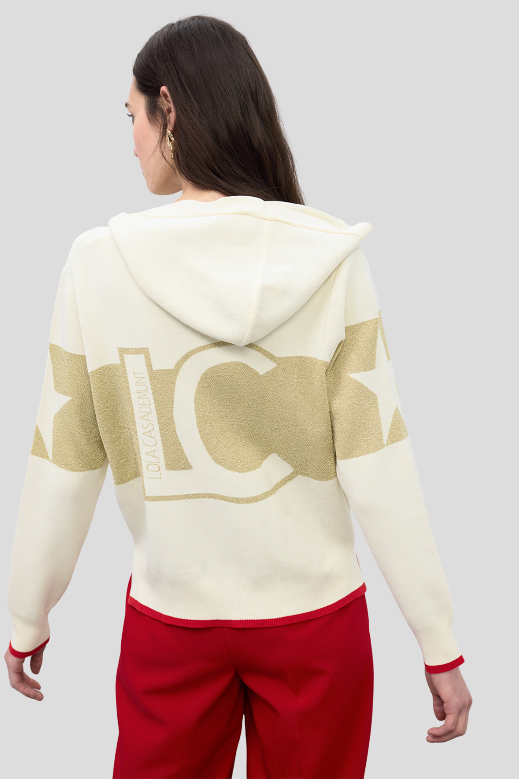 Elegant knit cardigan with hood enriched with golden lurex details that add subtle glamour and sophistication