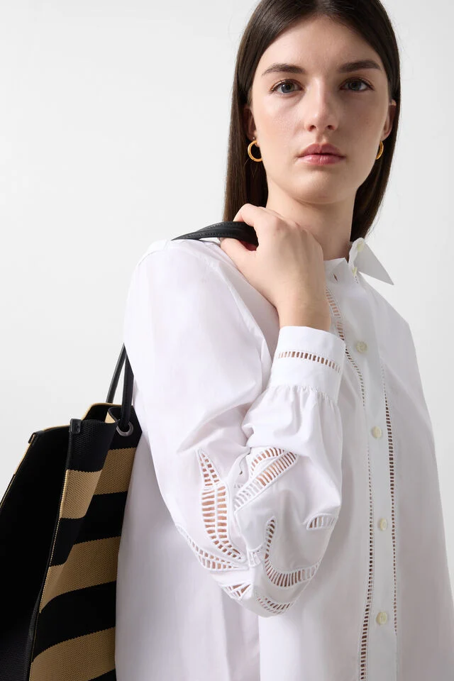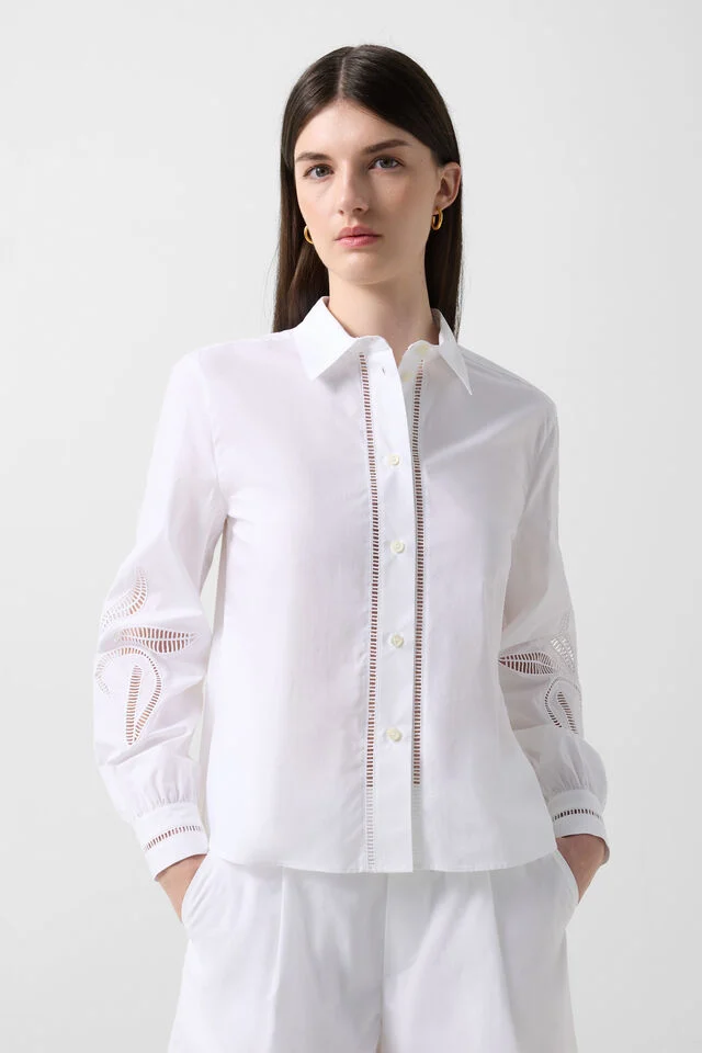 Long balloon sleeves with cuffs and buttons, continuous fastening with BOGNER mother-of-pearl buttons