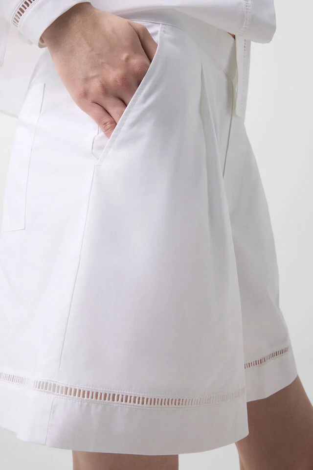 Two side pockets and a back pocket with a patch combine practicality with a stylish touch, while the pleated design provides natural movement and visual dynamism.