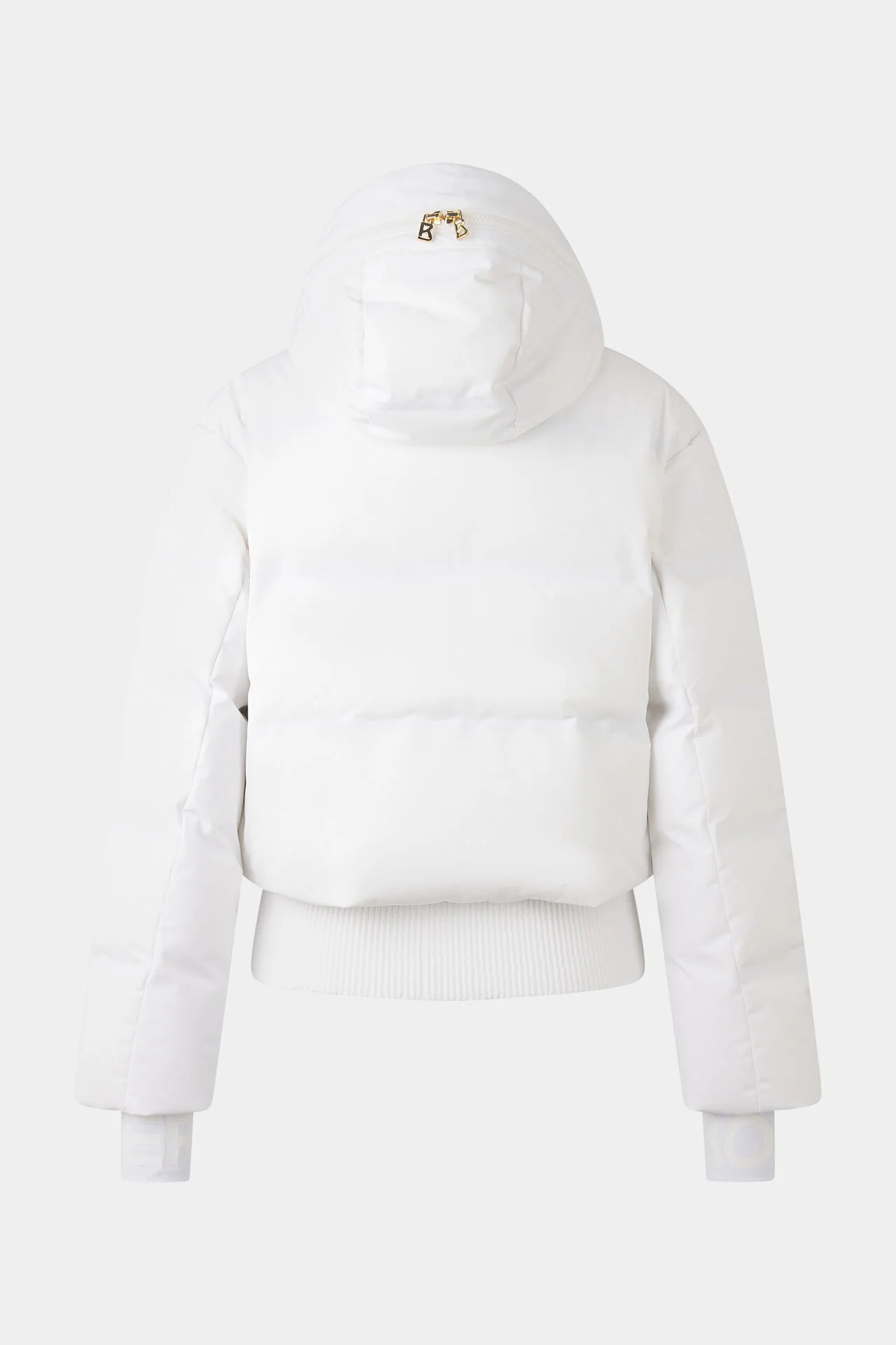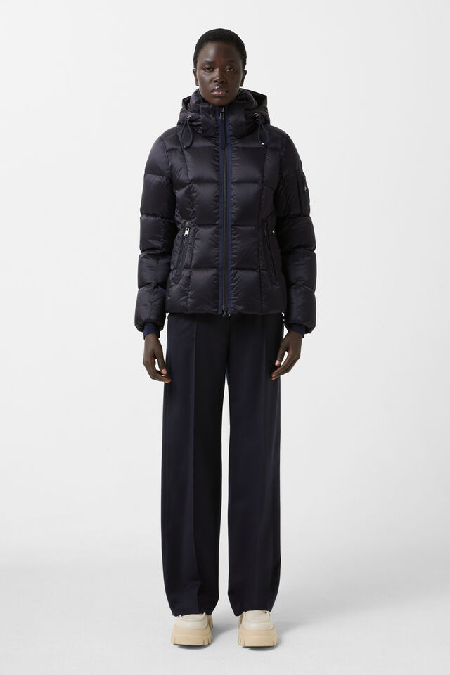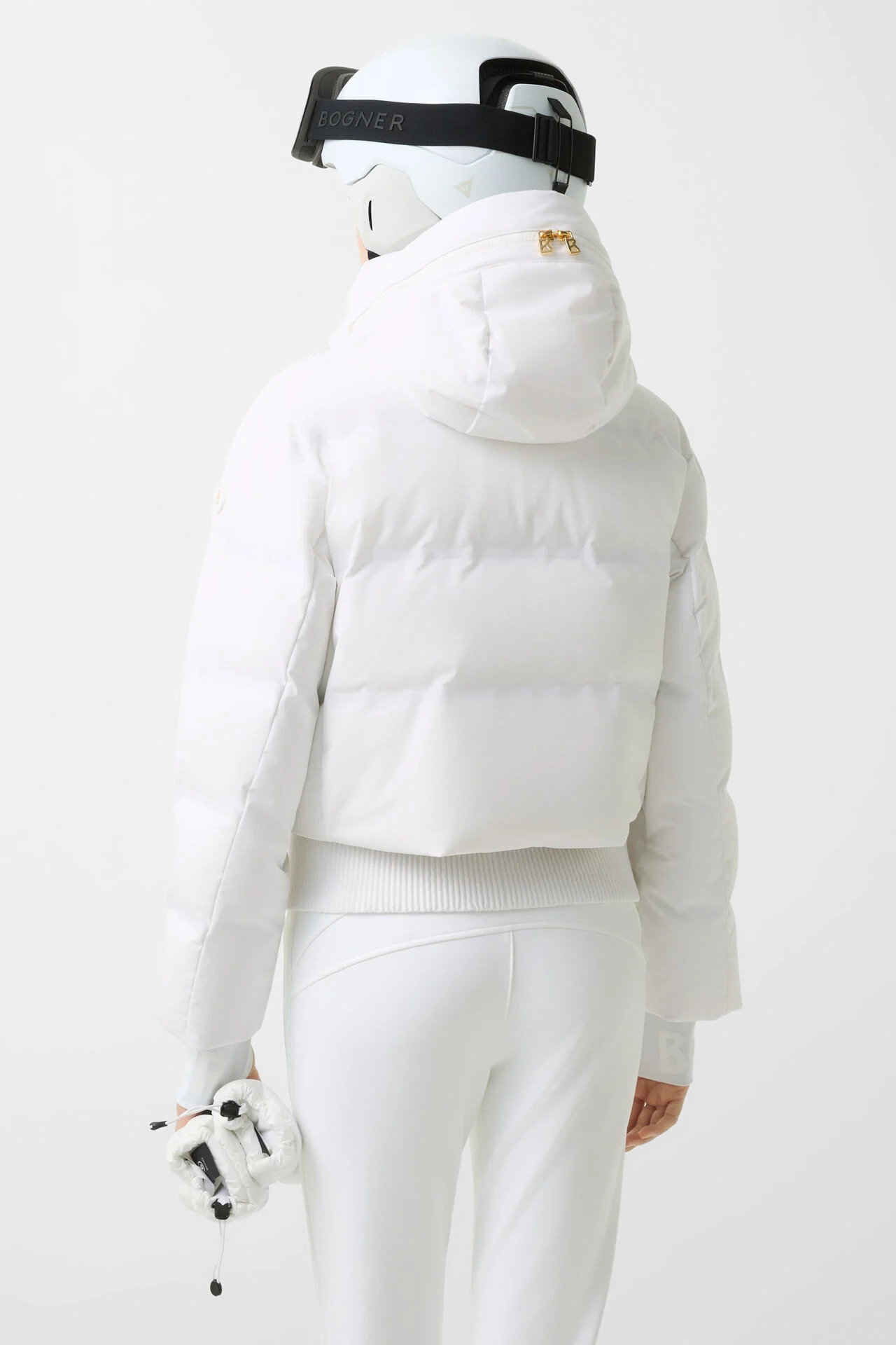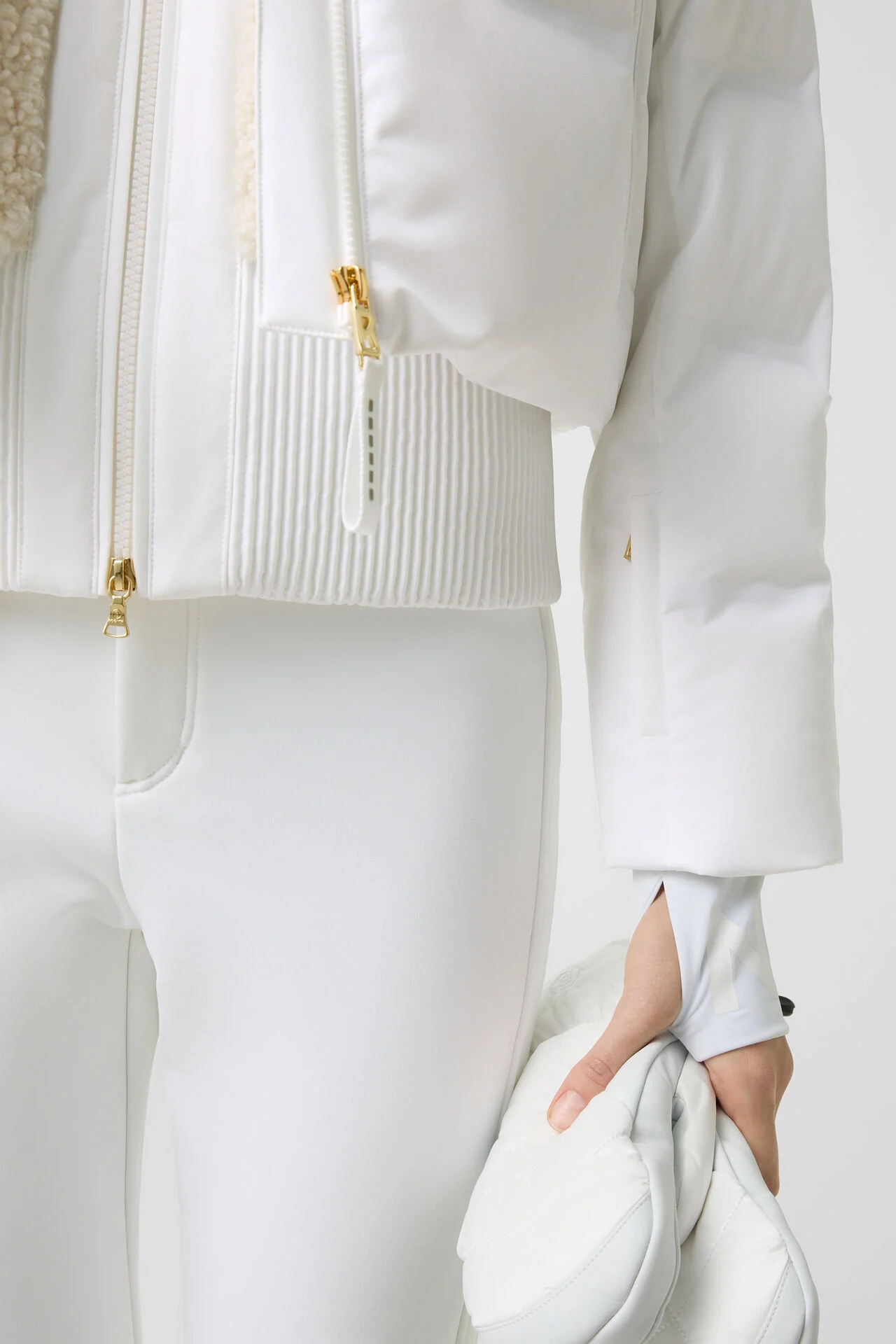 Vatted 2-in-1 ski jacket in classic silhouette padded collar with straight waist removable hood with drawstring stopper and zip with BOGNER print long sleeves cuffs on sleeves with inner elastic thumb strap with logo design fastens with B-zipper back logo panel ski card pocket zippered sleeve two side zippered pockets inside pocket waterproof Aquaguard zippers B-rubber patch on sleeve inner logo ribbon and brown fabric with smooth lining and flame print removable plush vest with smooth tech parts stand-up collar waistband padded two-way zipper side pockets with piping and hem with attached ribbed cuff as a snow cuff durable water-repellent coating water column 20,000 mm breathability 20,000 g per m² per 24 hours warming goose down lining and tech fibres hem with drawcords and stopper back length 50 cm