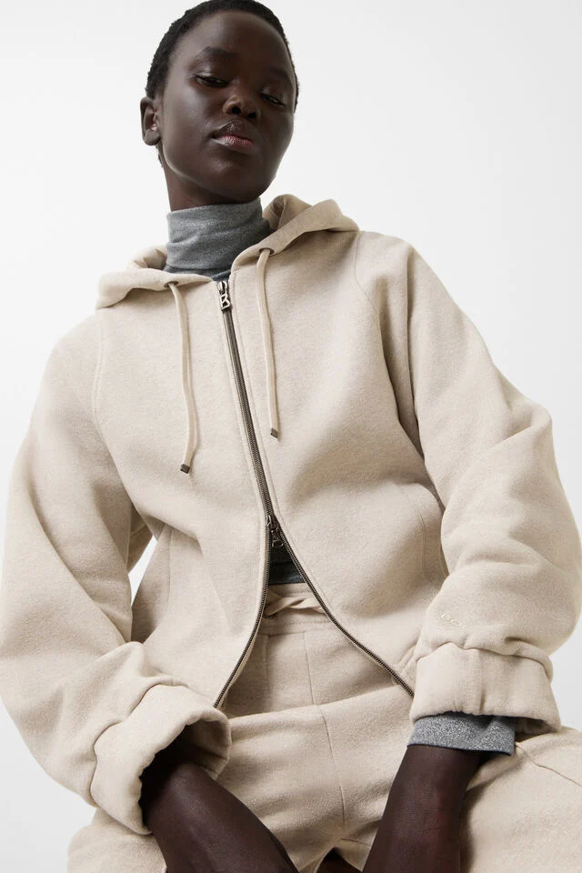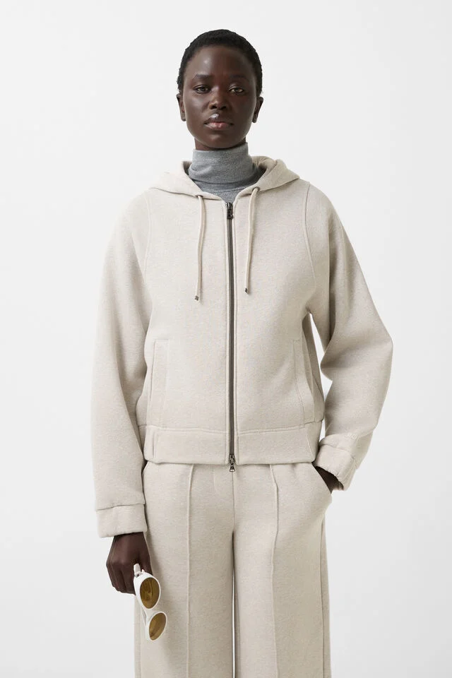 Hooded sweatshirt in a classic silhouette, featuring a fixed hood with drawstring ties and long sleeves