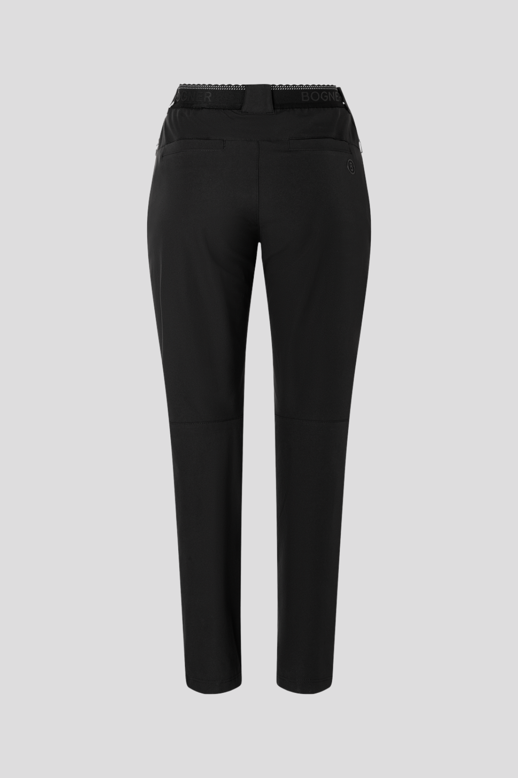 Trousers in a straight silhouette, waistband with waistband rings and elasticated Y-strap with embellished ends, fastens with a secret hook and internal button, additional front zip and contour button, two side zipped pockets and two back pockets, discreet logo print to right rear leg and logo label to right front waistband, made of lightweight, water-repellent 4-way mechanical stretch tweed, GRS certified, with Durable Water Repellent DWR C0, no PFAS substances intentionally added for safe and durable water-repellent functionality, careful maintenance ensures durability and preservation of material qualities