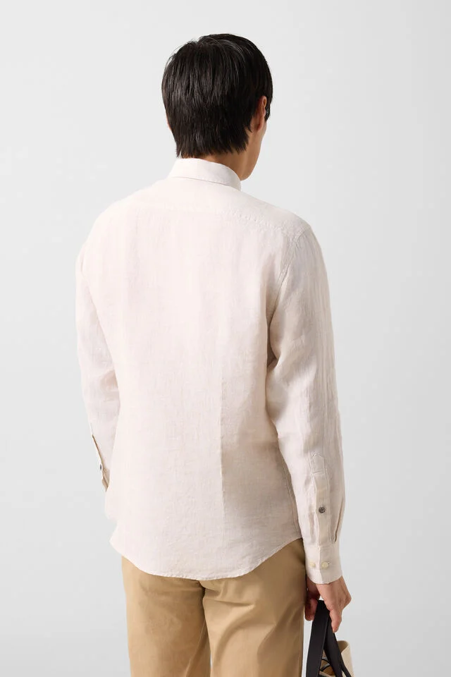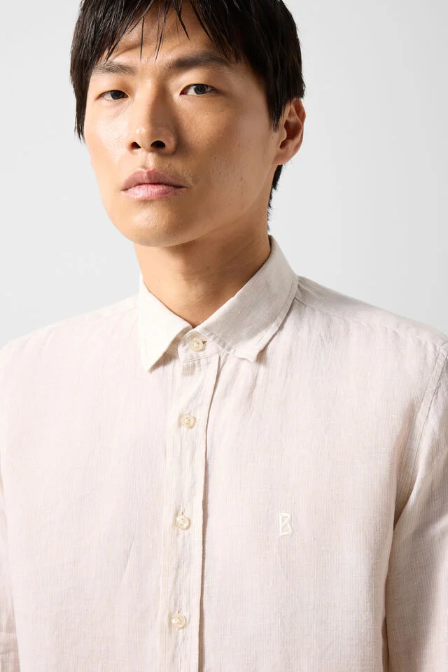 Prime Fit linen shirt with subtle striped design and classic silhouette