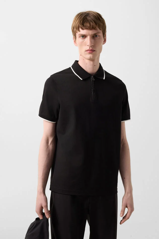 Polo shirt in a classic silhouette, with knit collar and short sleeves with knit cuffs for a sophisticated finish