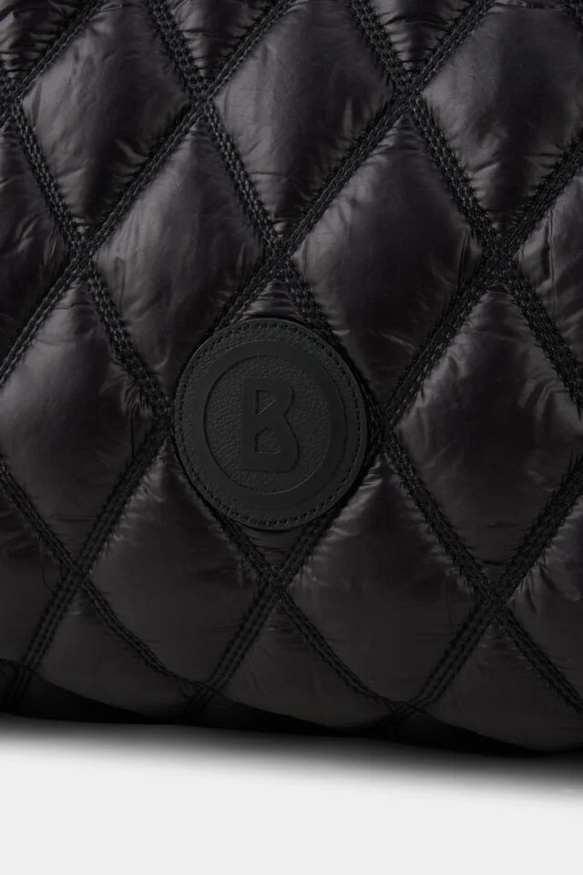 A round leather patch on the front accentuates the detail, while an interior zip pocket and two additional zip pockets provide practical space allocation