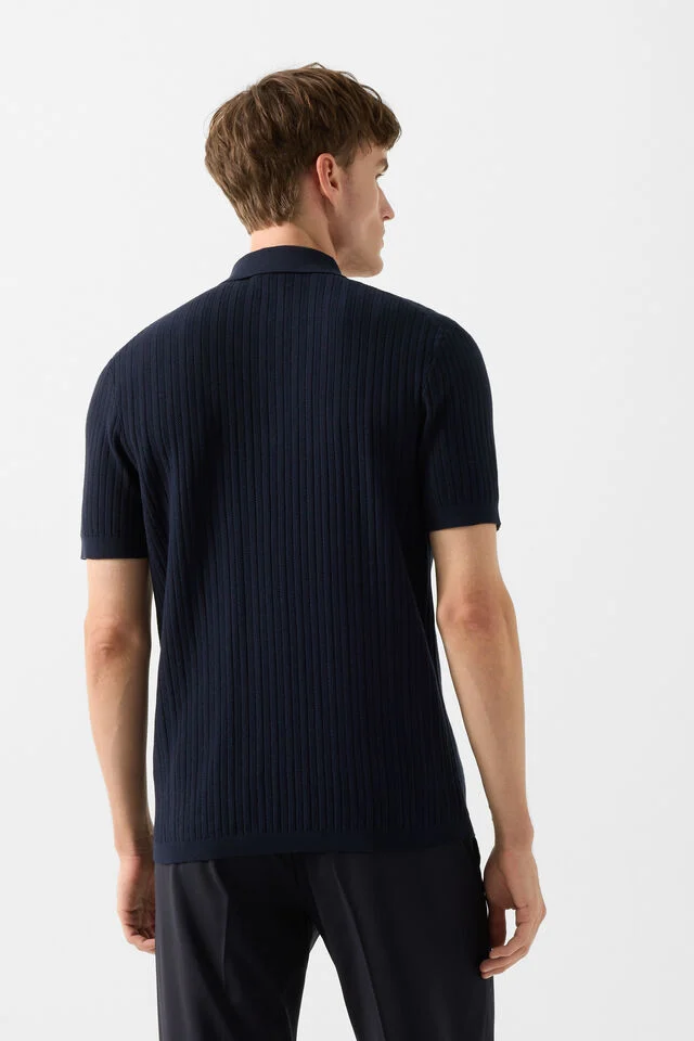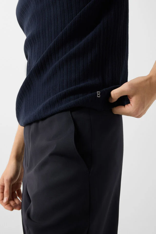 Къси ръкави с оребрени маншети, къса закопчалка с копчета BOGNER