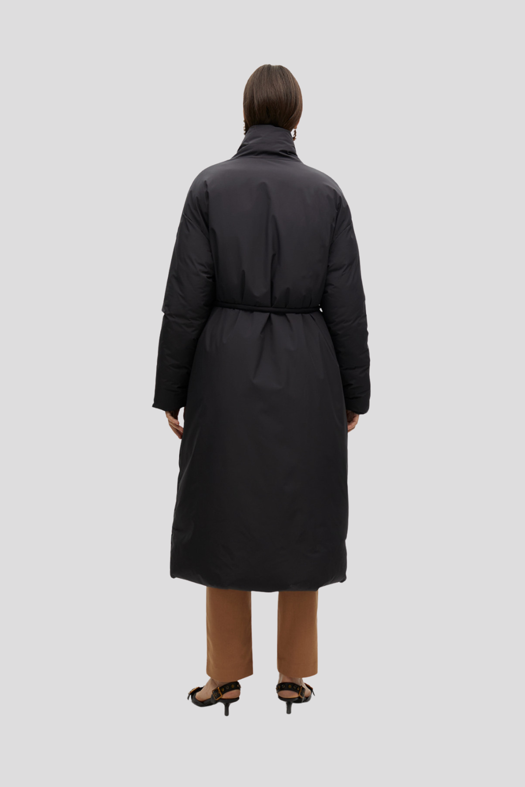 Long silhouette reveals roomy side pockets and discreet concealed fastening