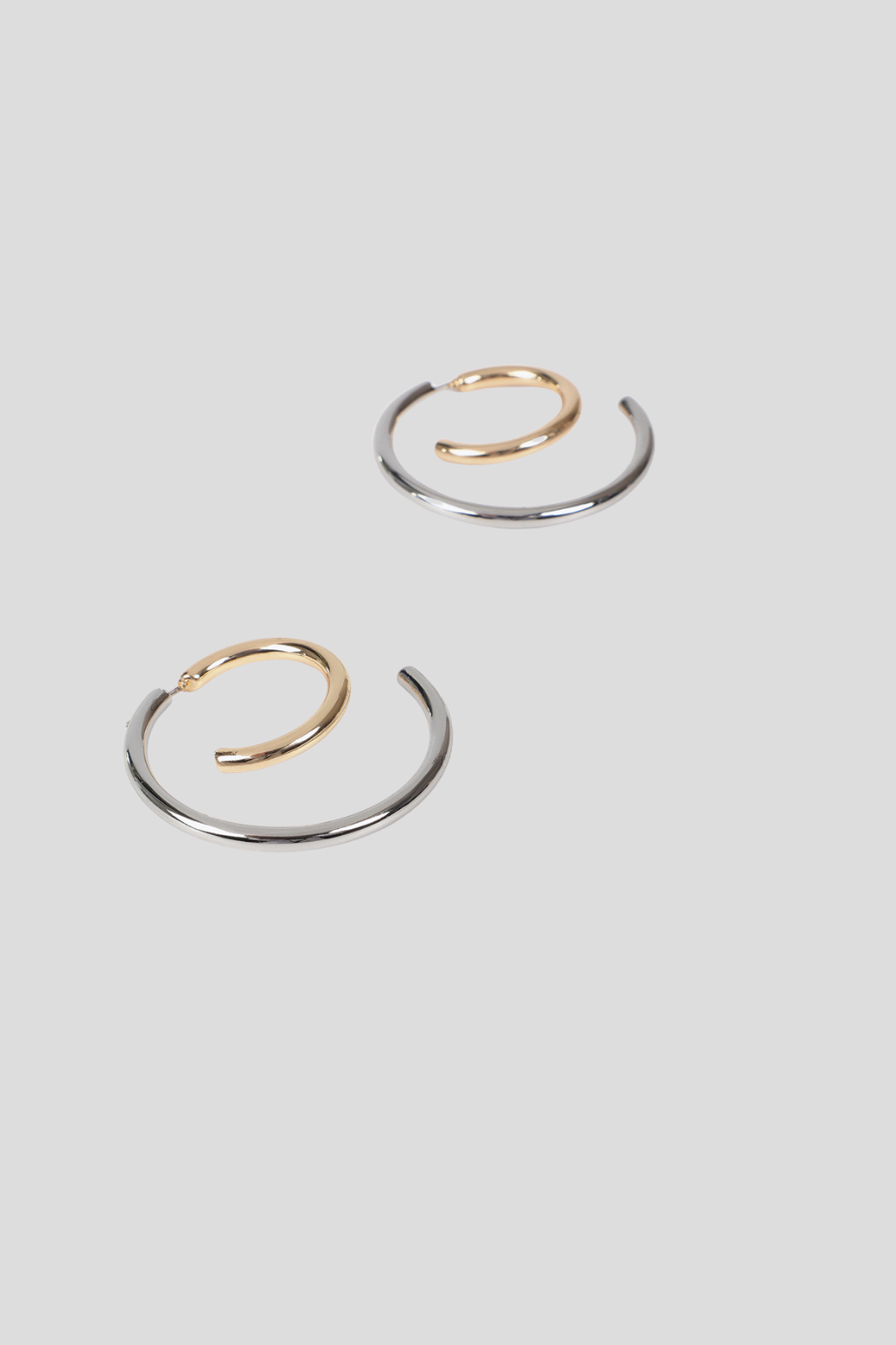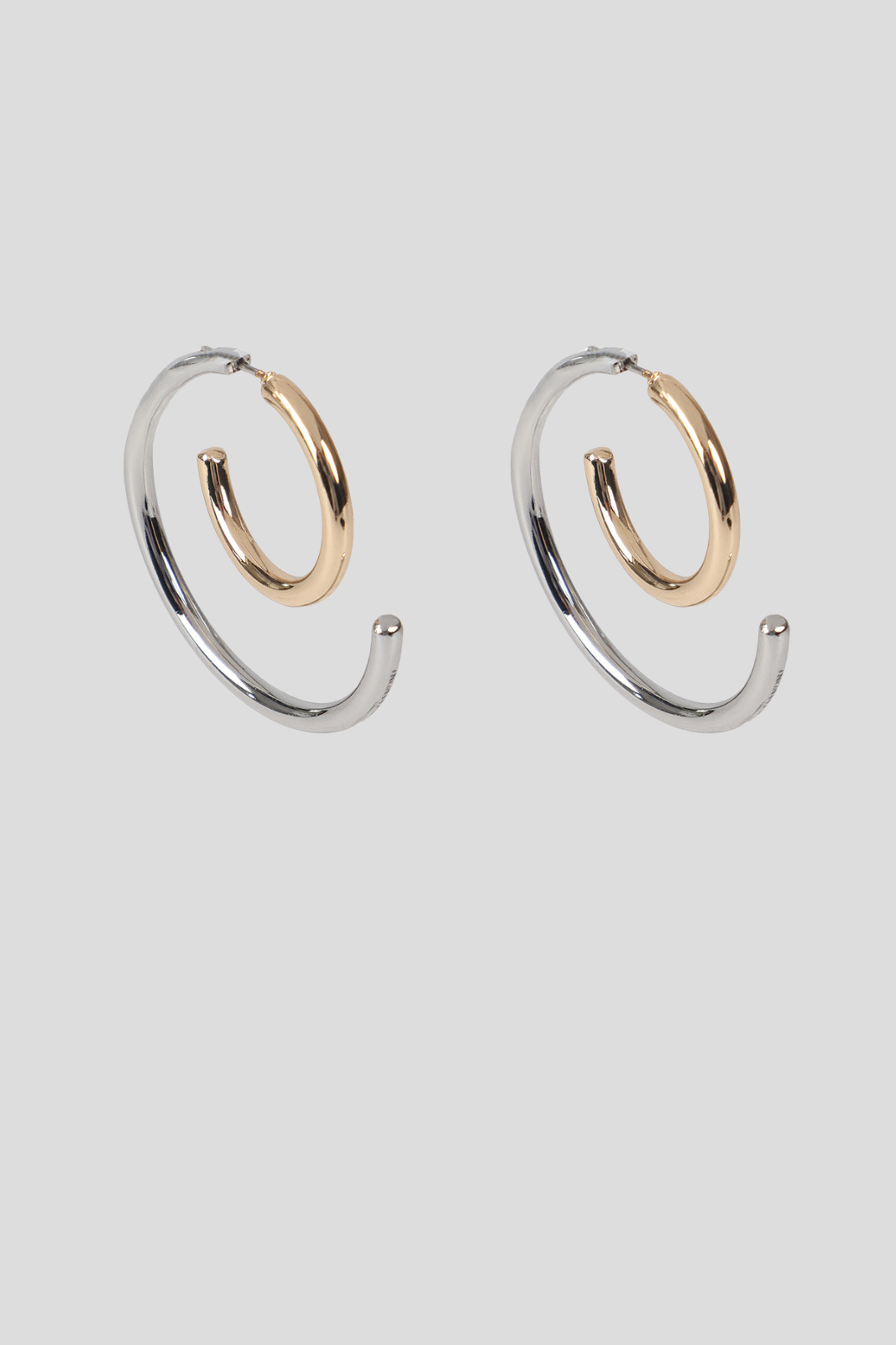 Обеци със спираловиден дизайн и елегантно двуцветно покритие в златисто и сребристо