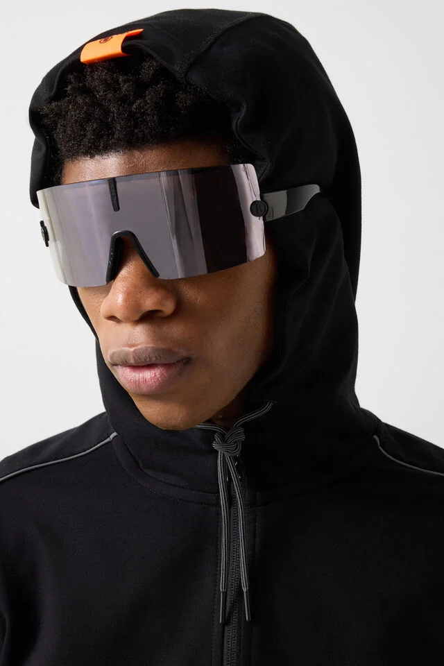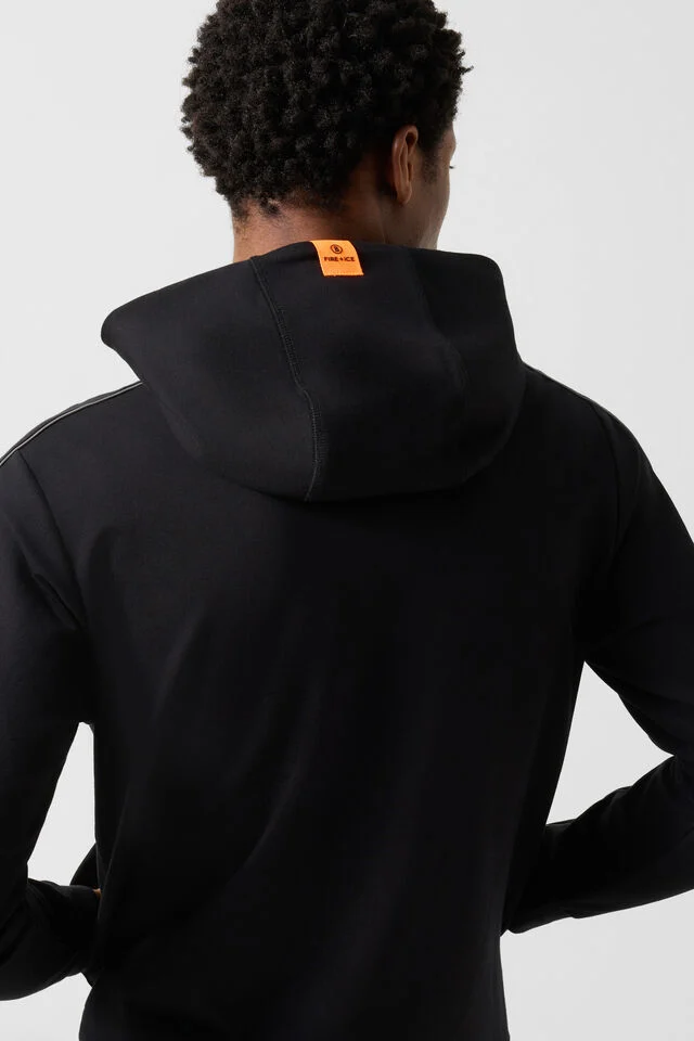 Drawstring with reflective finish overlock seams and FIRE+ICE patch on hood