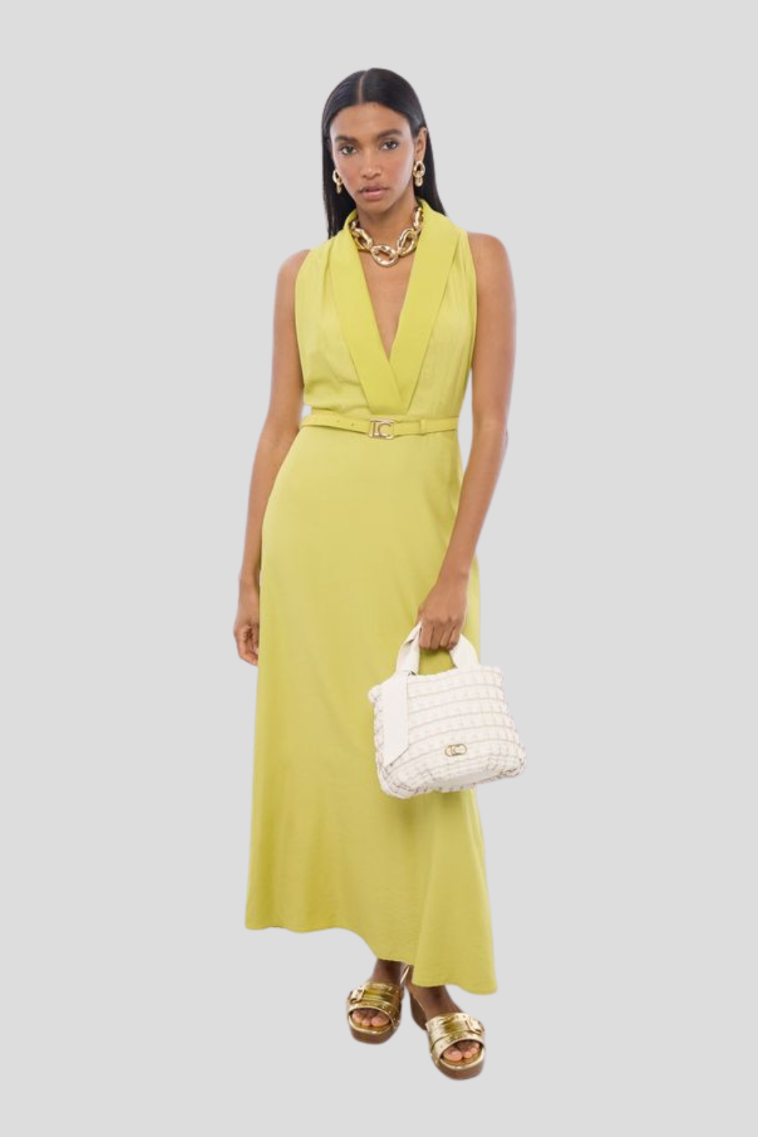V-neck Dress with Buckle Waist