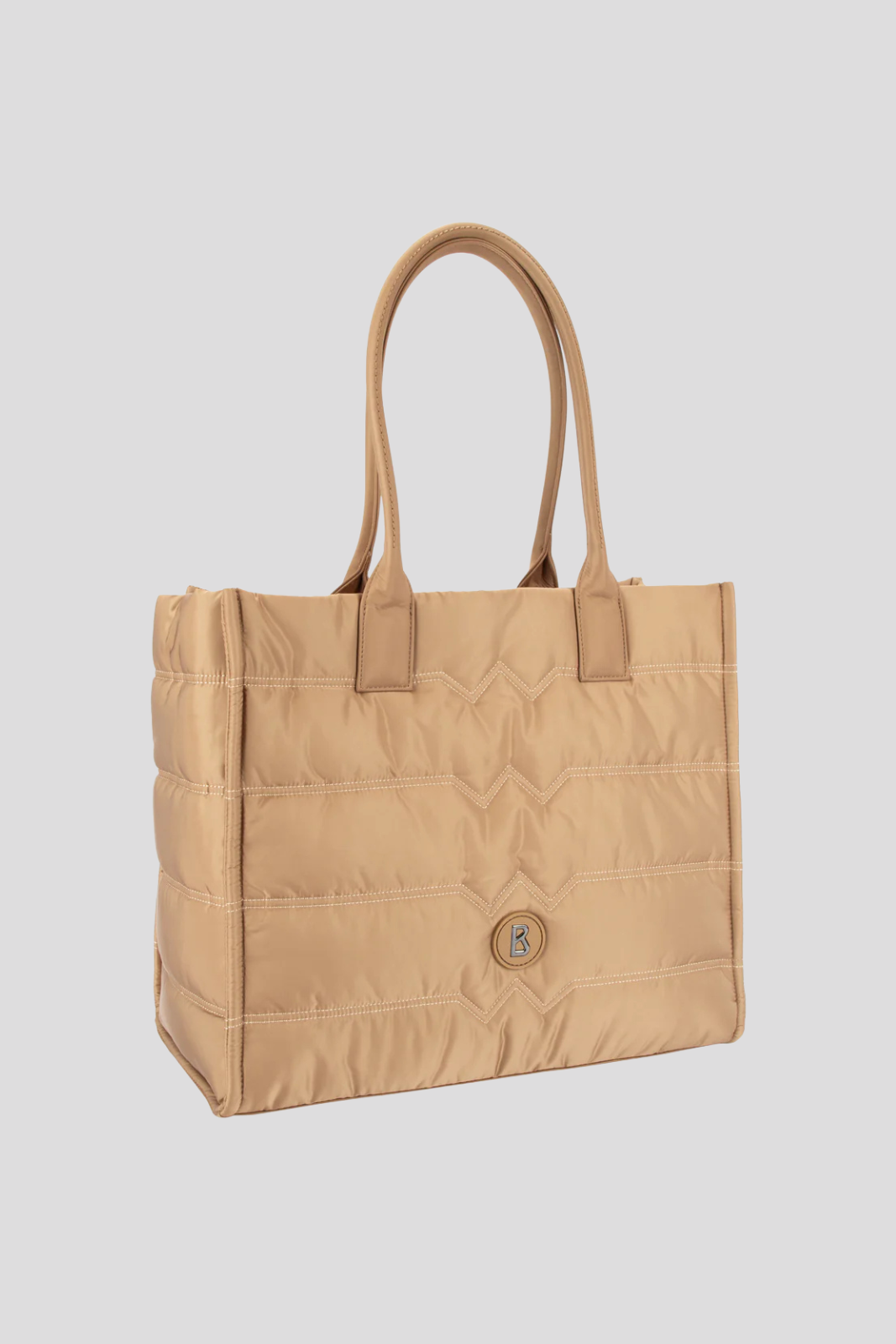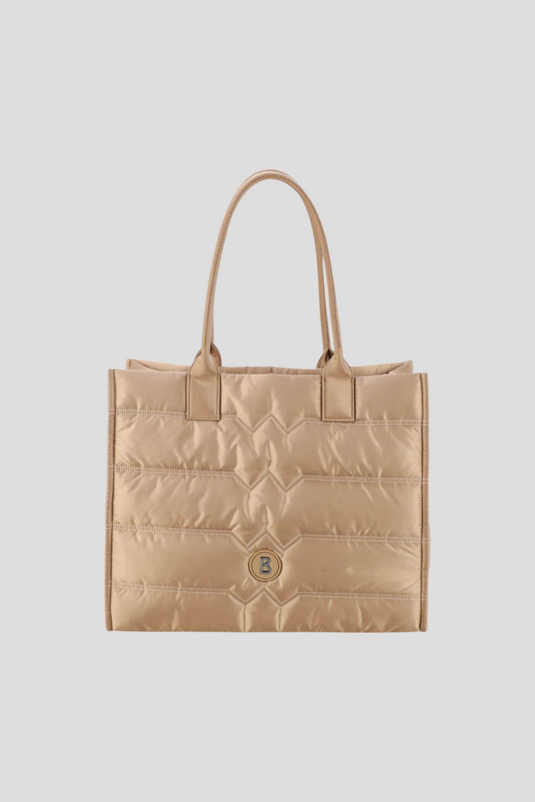 Fine decorative stitching highlights the refined craftsmanship, while the interior features a smooth lining printed with the iconic B logo