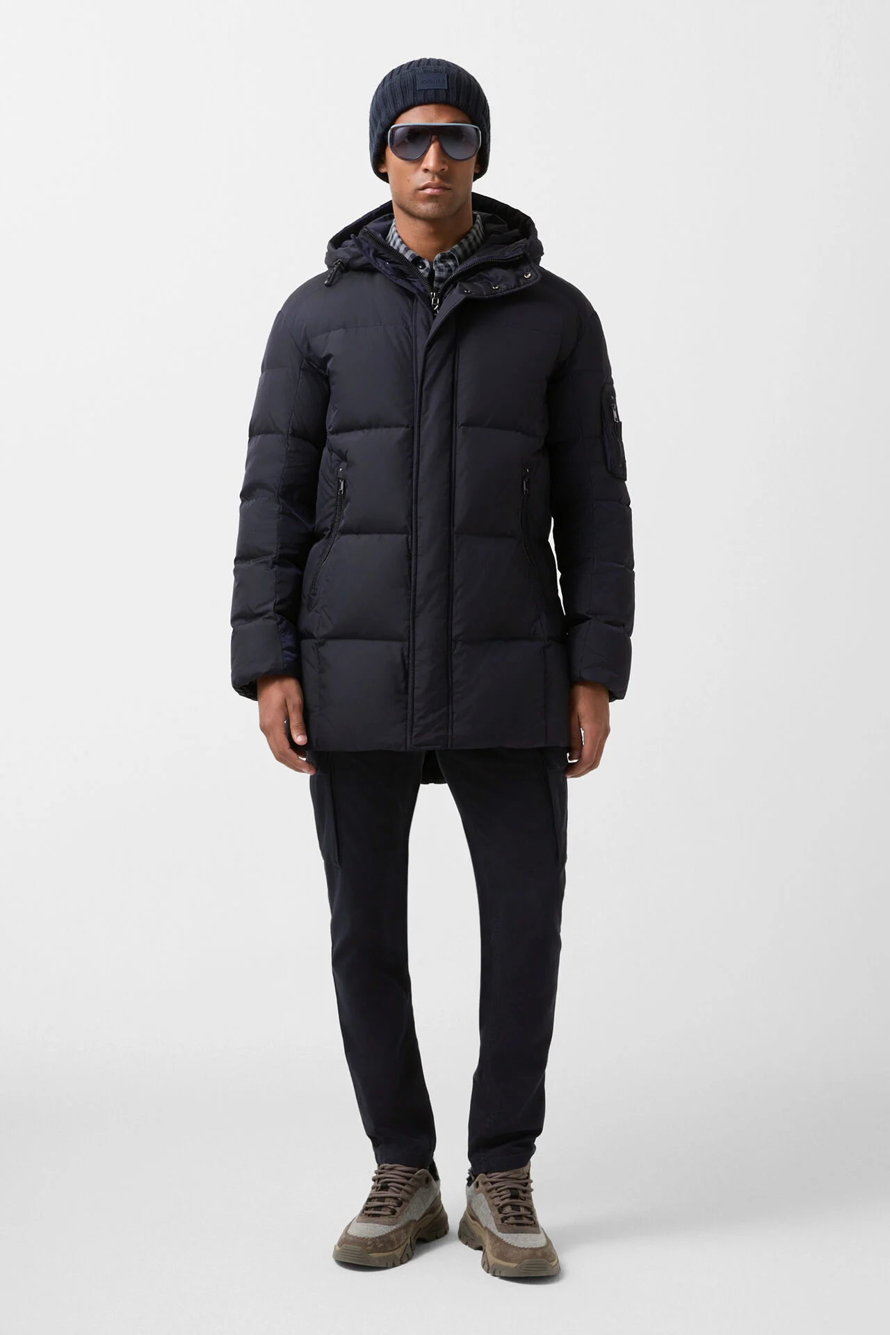 A padded collar with a straight waist accentuates the contemporary silhouette, while long sleeves finish with ribbed cuffs for optimal fit and comfort